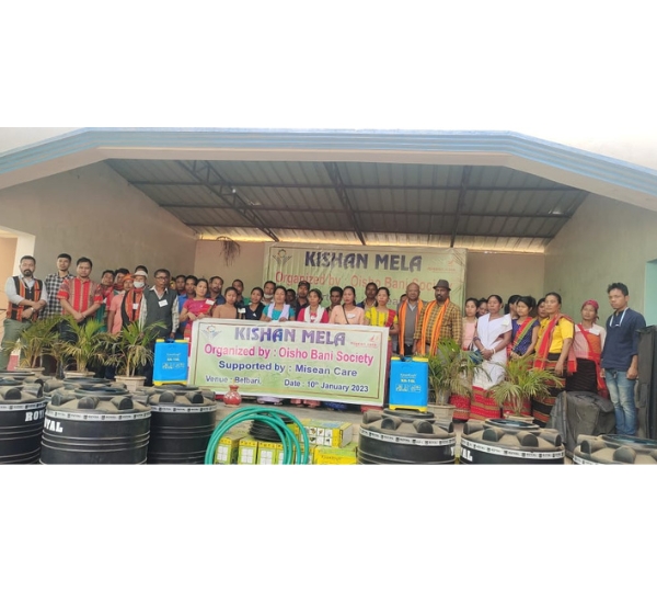 Oisho Bani Society (OBS) with the support of Misean Cara is working for the development of farmers in Jirania and Jampujala Sub-Division. OBS has mobilized 300 farmers and formed into farmers clubs. There are 16 farmers clubs actively functioning. Regularly various capacity building trainings and livelihood support have been provided for the farmers by OBS. In order to recognized, encourage and link the farmers to the market a Kisan Mela was organized on 10.01.2023 at Belbari, Champaknagar. 300 farmers took part in the Kisan Mela, each farmers club put up stalls to showcased their organic farm products. Mr.Pinku Basal Debbarma , agri sector officer of Belbari was the chief guest and Br. M.K Devassy the Principal of Monfort School, Champaknagar and Fr. Valentine Dungdung the Secretary of OBS was the special guests of honours. Fr.Jeevan Kennady ,the Director of OBS in his inaugural address explained the purpose of organizing Kisan Mela and explain the critical role played by the farmers in nation building. During the Kisan Mela ,16 water tanks, 16 medicine sprayers and 3 water pumps were distributed to the farmer’s clubs. Mr. Bishop Debbarma proposed the vote of thanks.