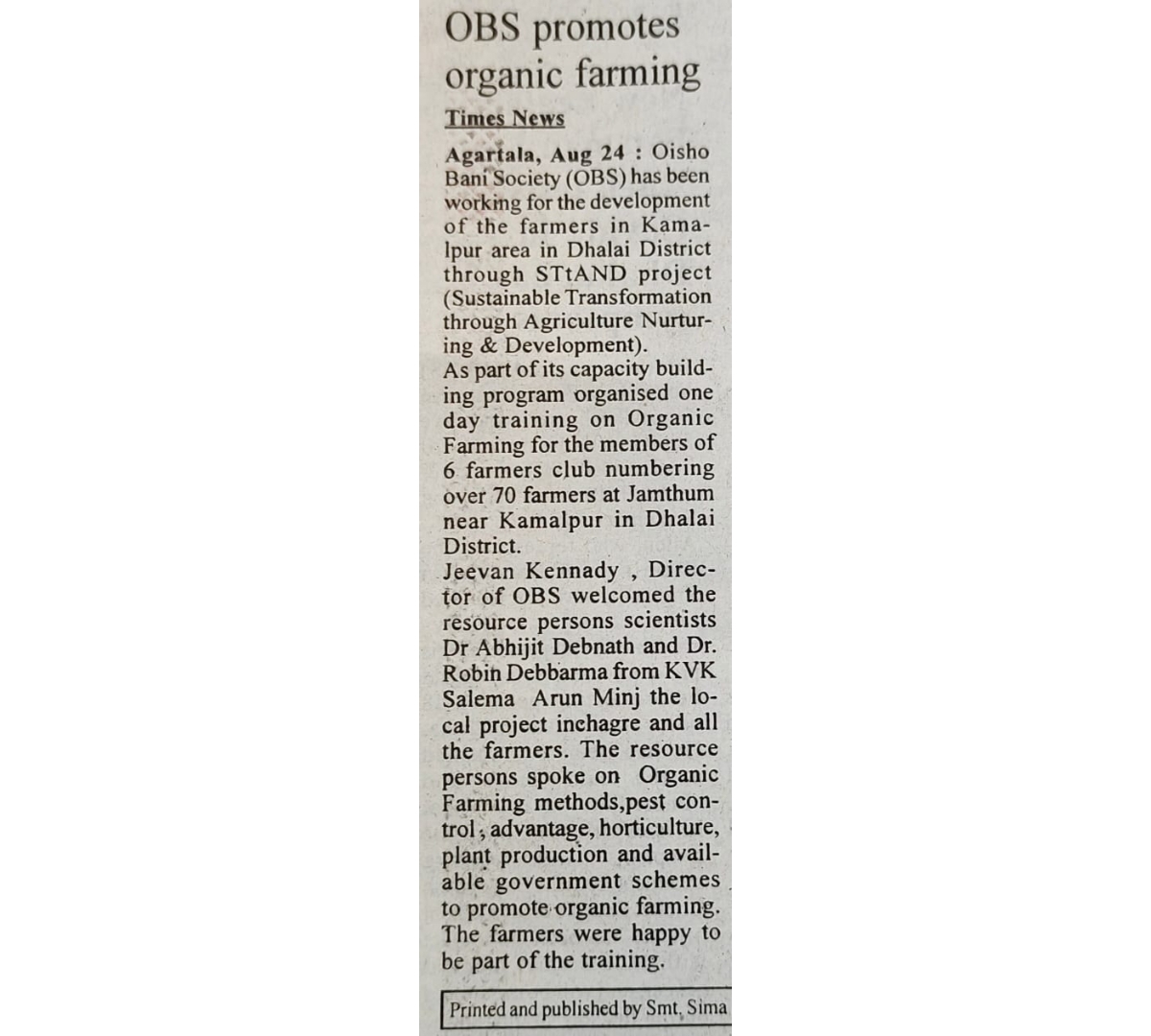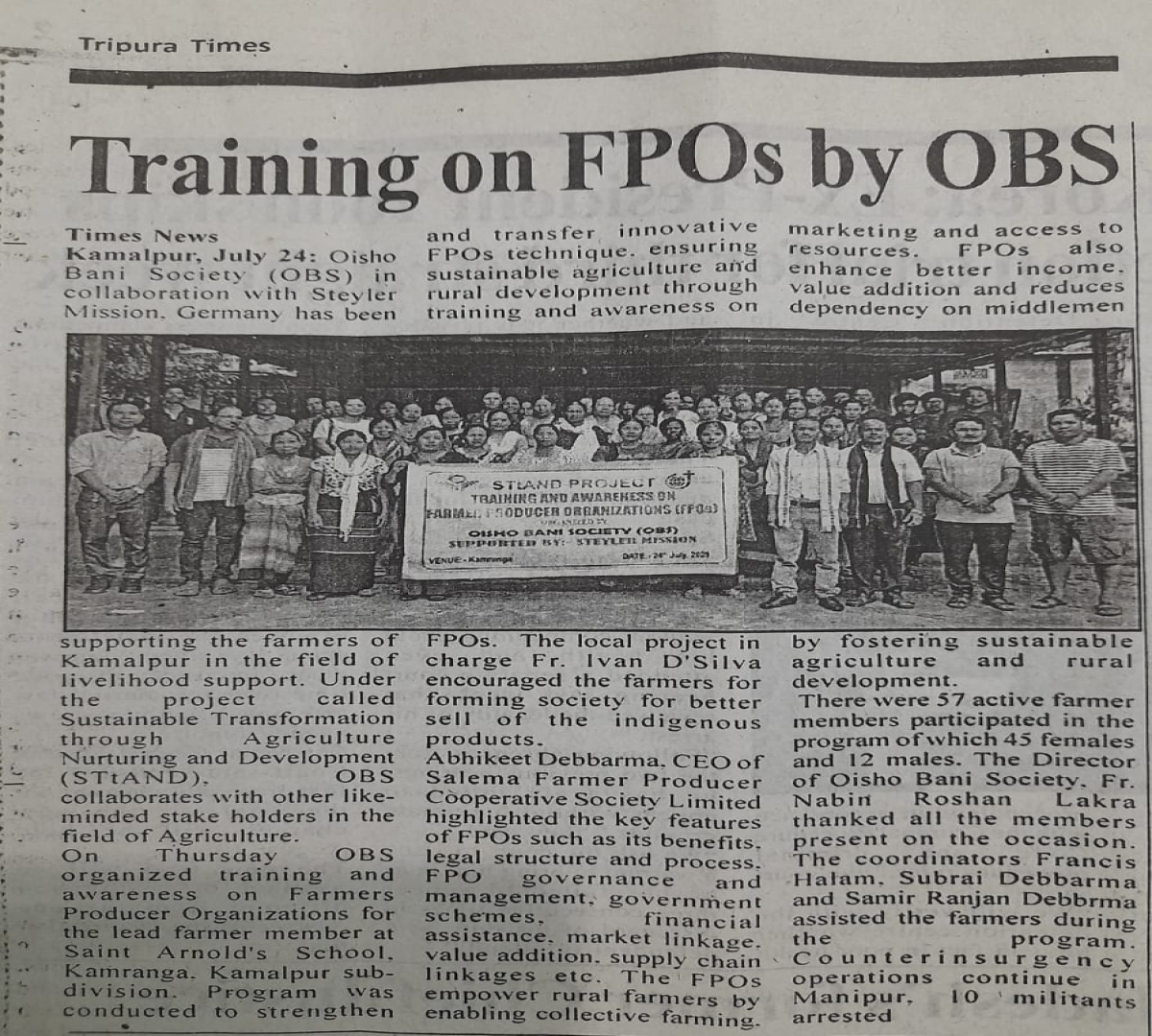 OBS promotes organic farming (Tripura Times - 24.08.2021)