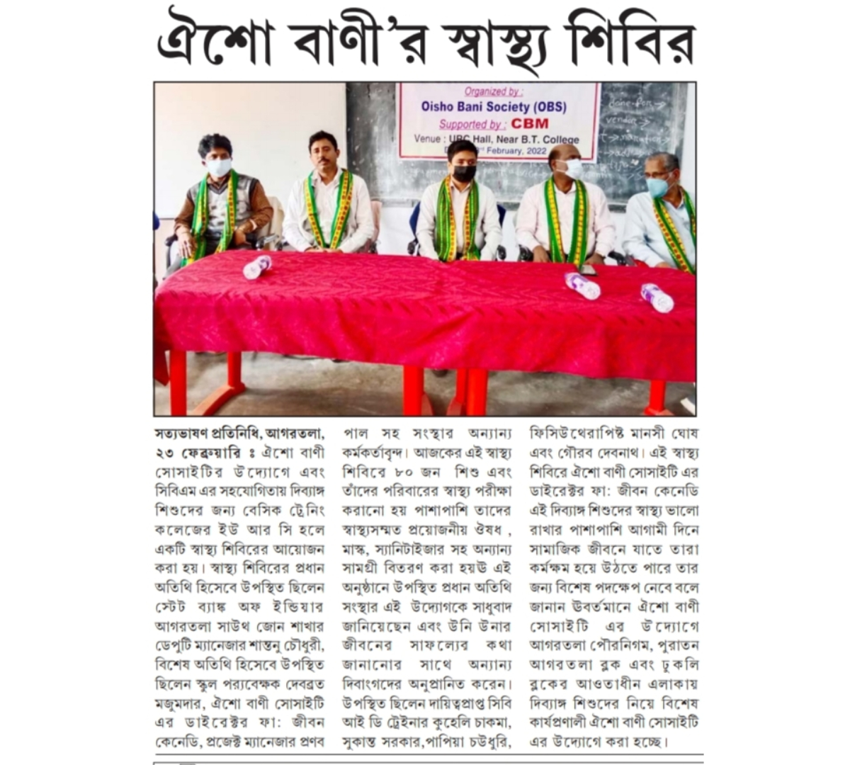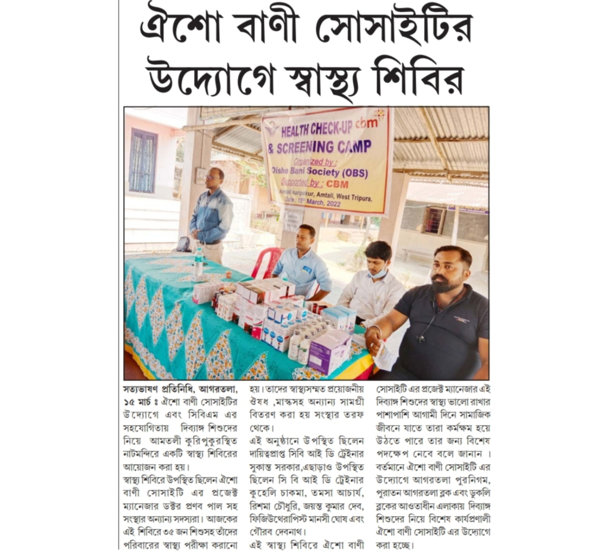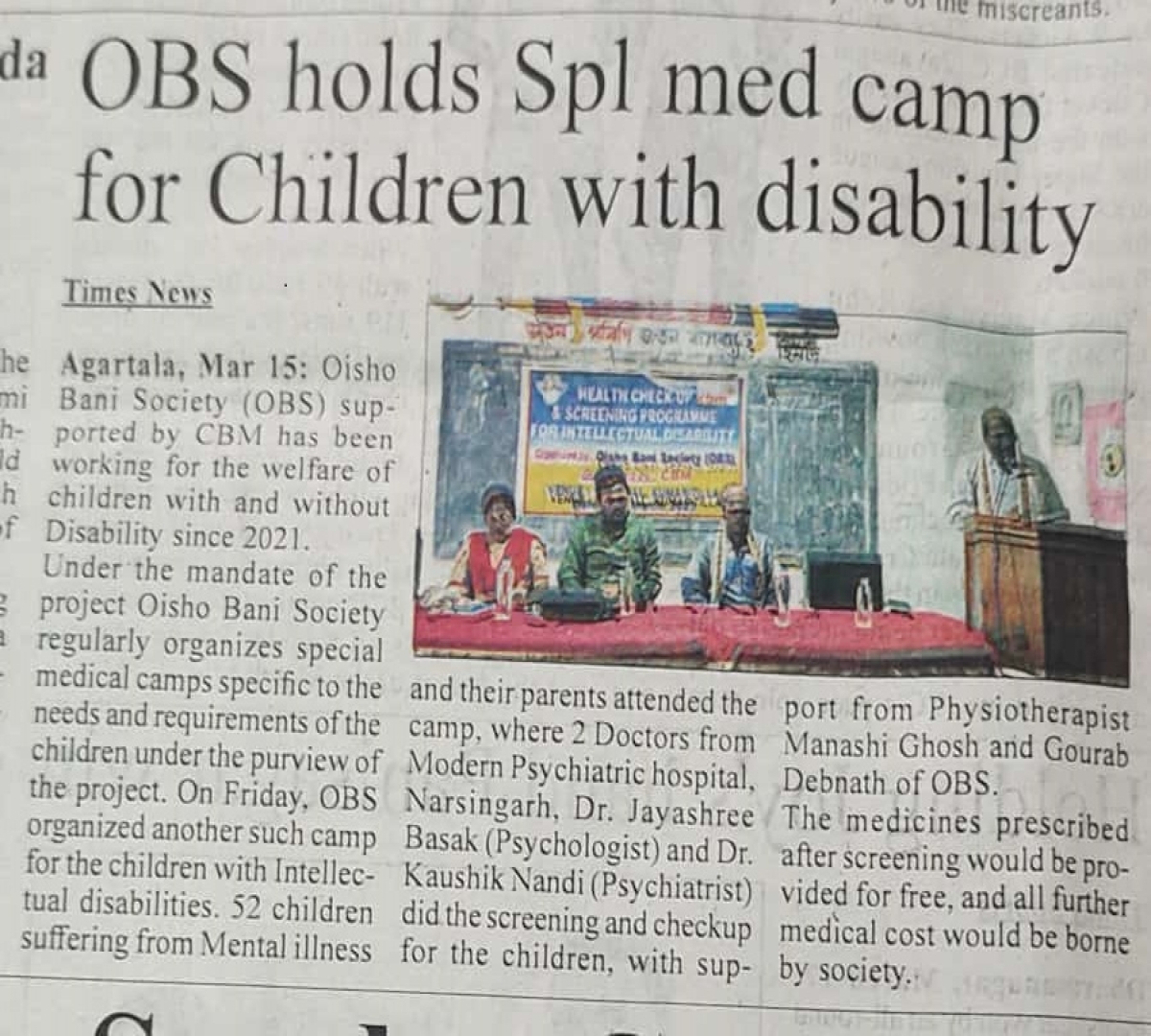 Oisho Bani Society (OBS) organised health camp for Divyangjan