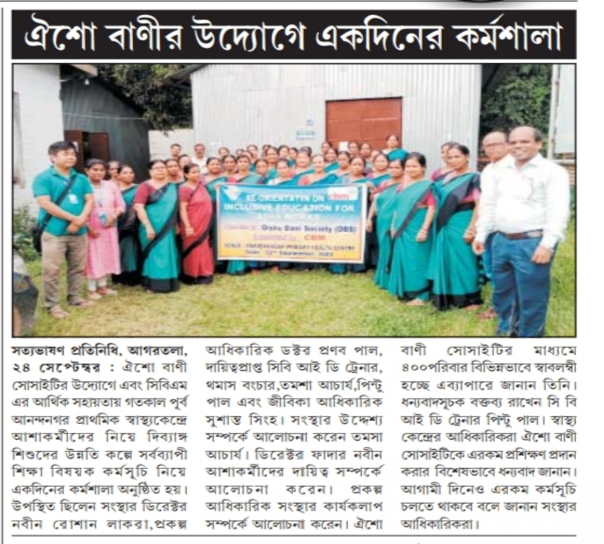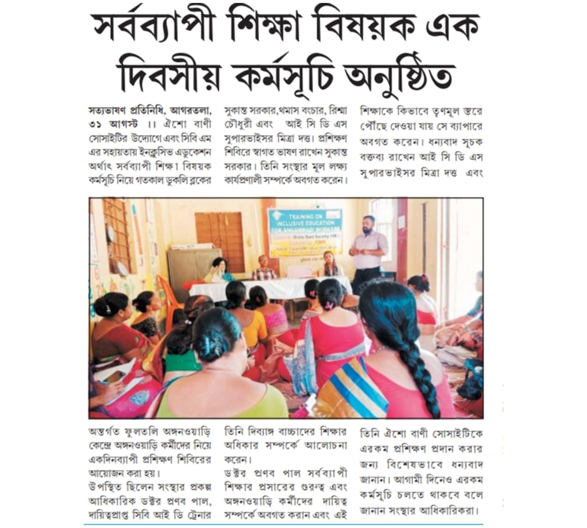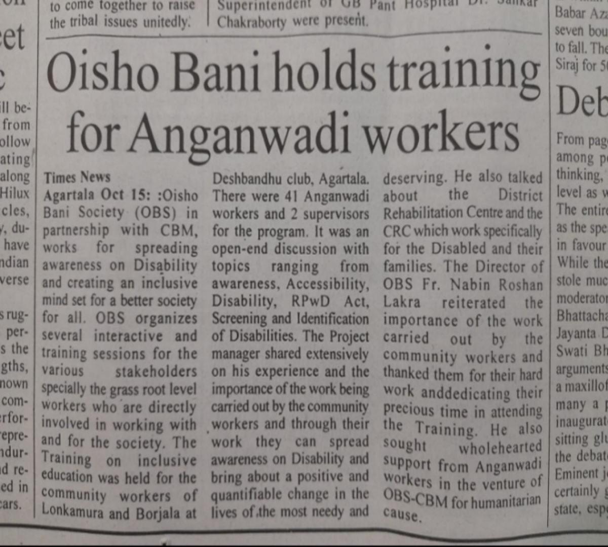 Oisho Bani Society organized a training on Inclusive Education for Anganwadi workers