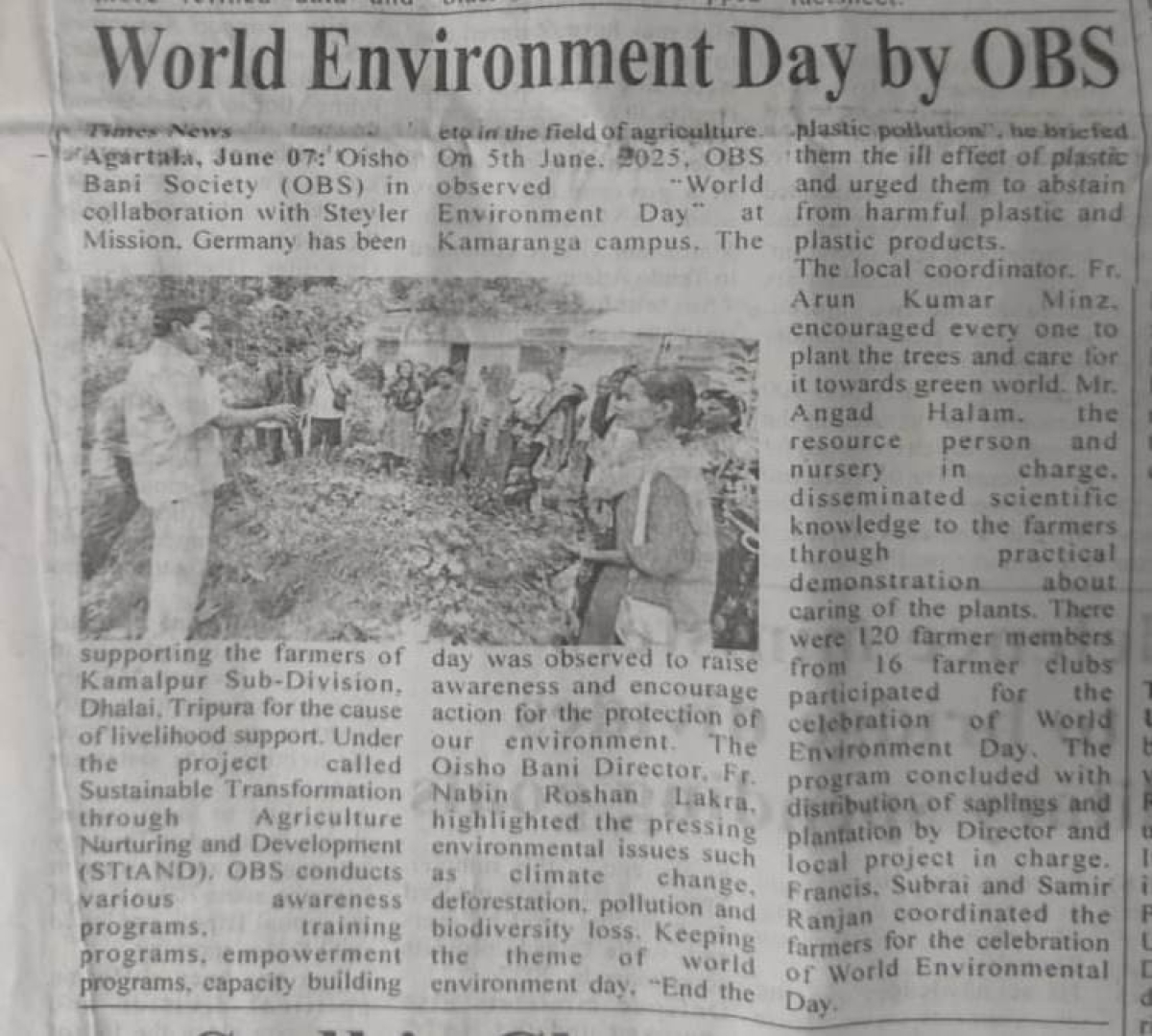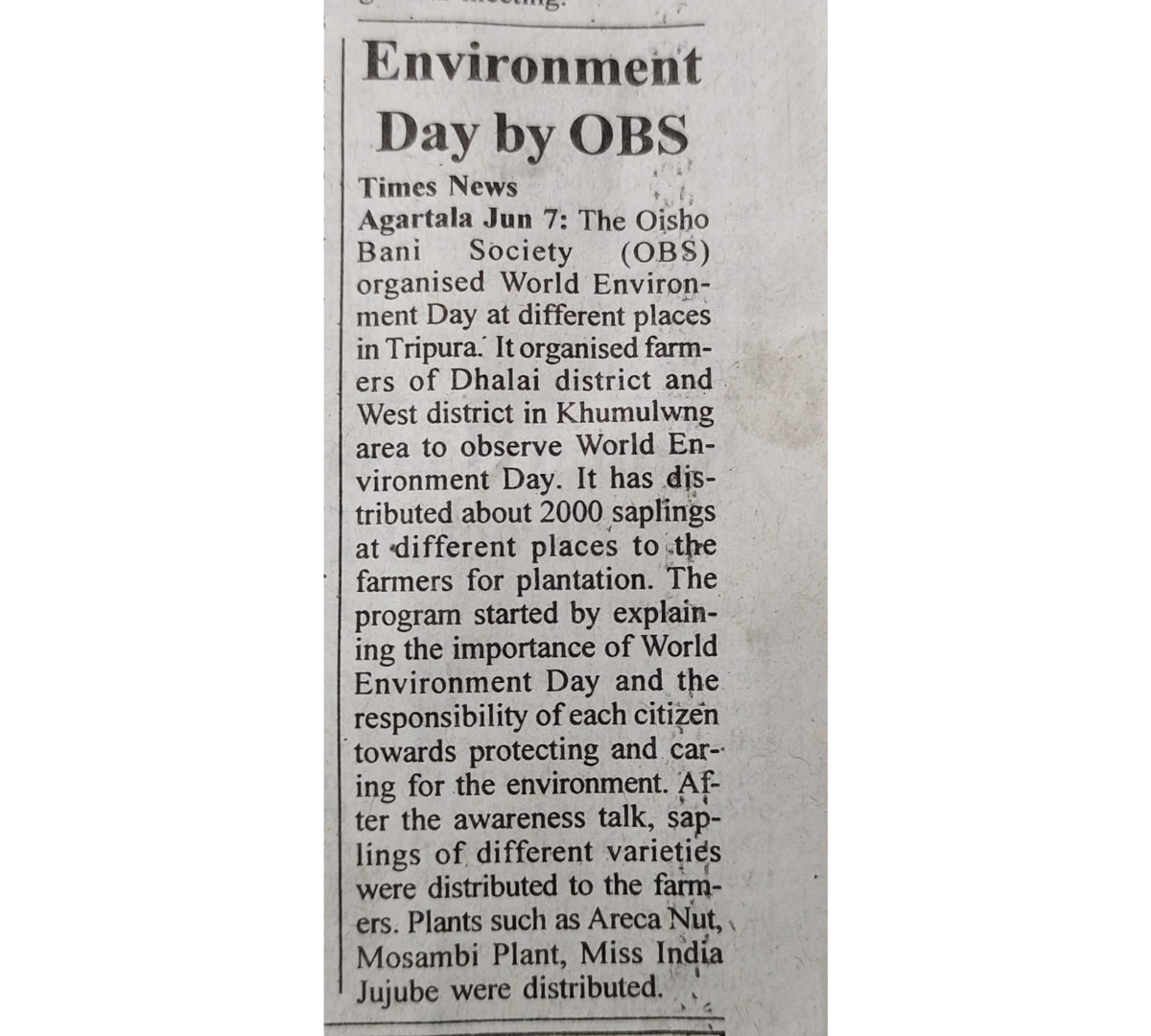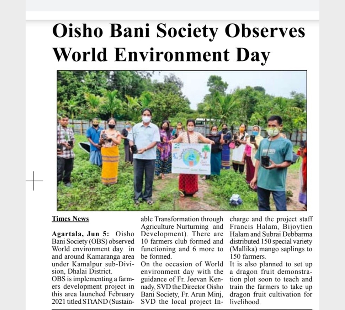 Oisho Bani Society Observes World Environment Day (Tripura Times - 05.06.2021)