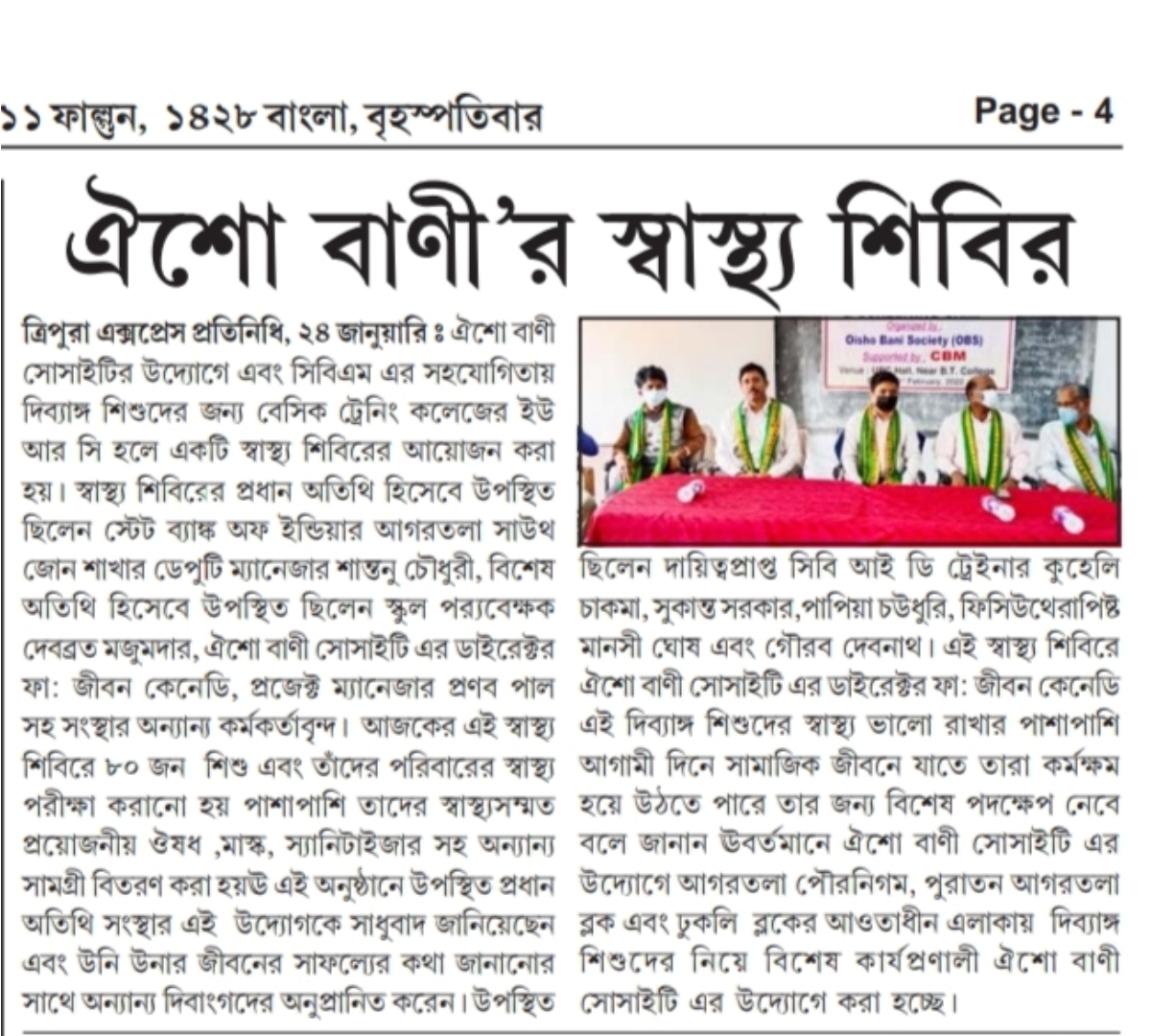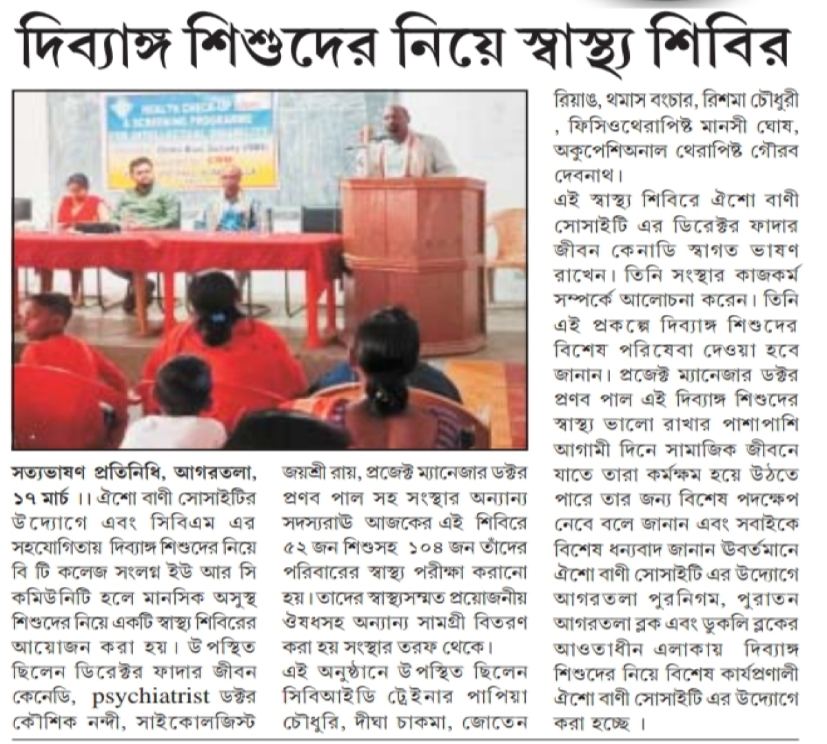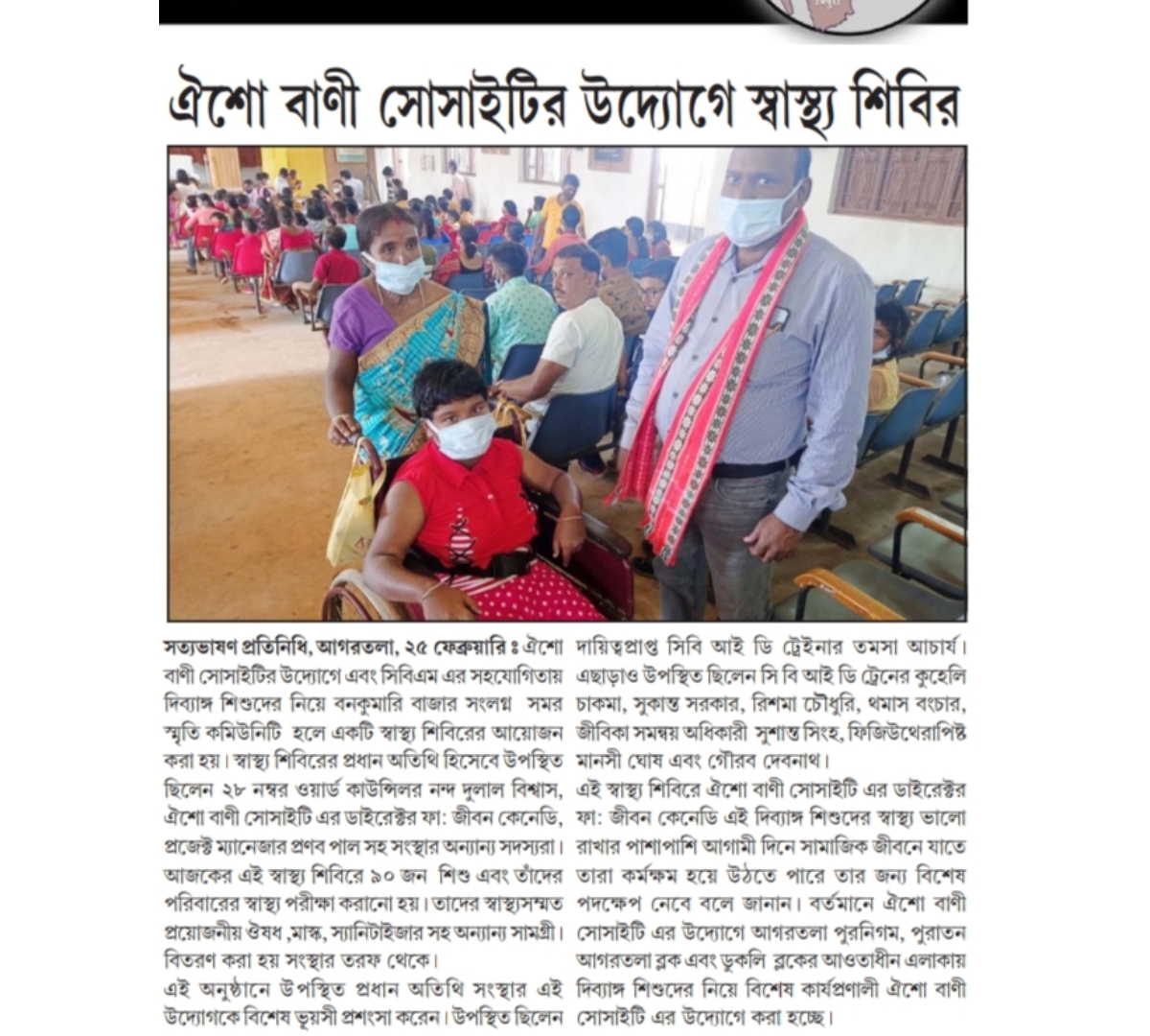 Diagnostic camp at St Joseph Hospital (Tripura Times 26-07-2021)