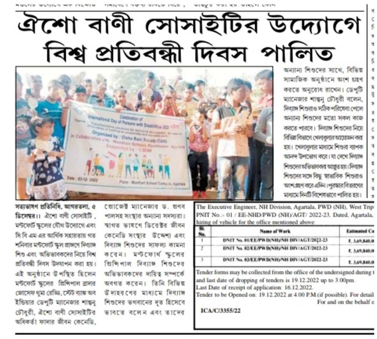 World Disable Day is observed under the initiative of Oisho Bani Society