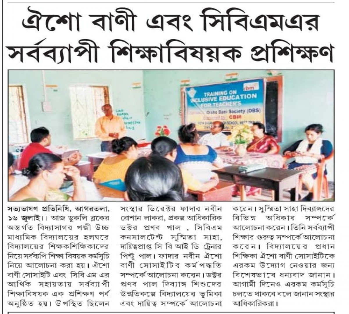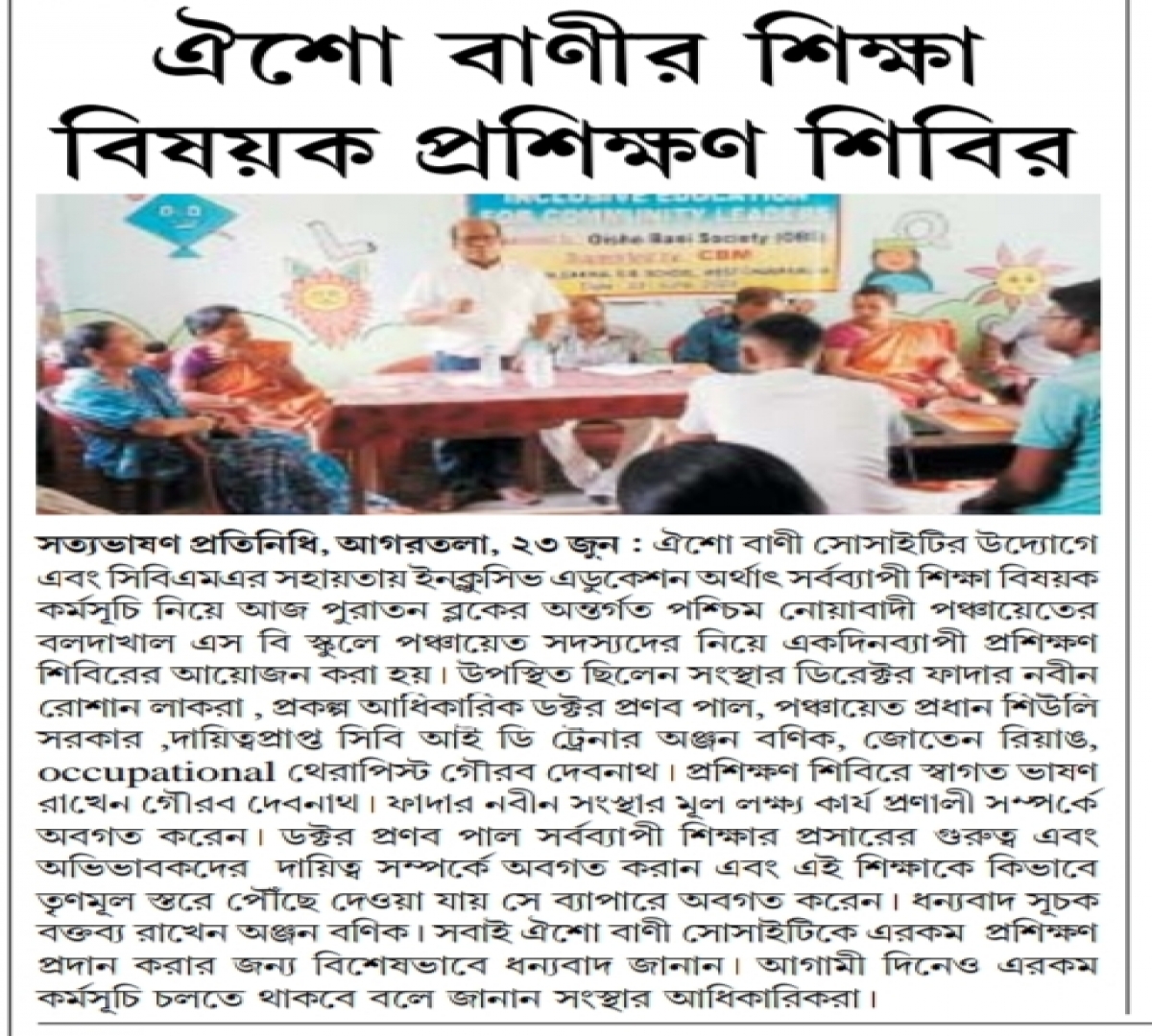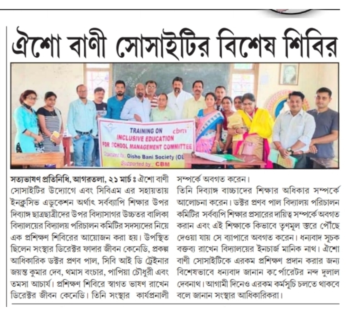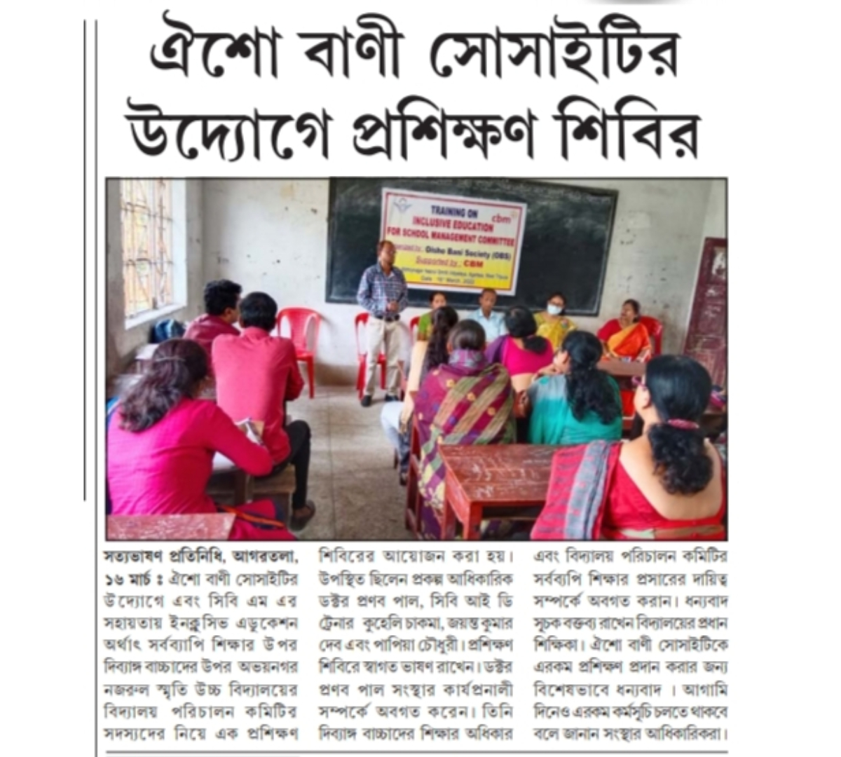 Oisho Bani Society organised Training on cbm Inclusive Education for School Management Committee
