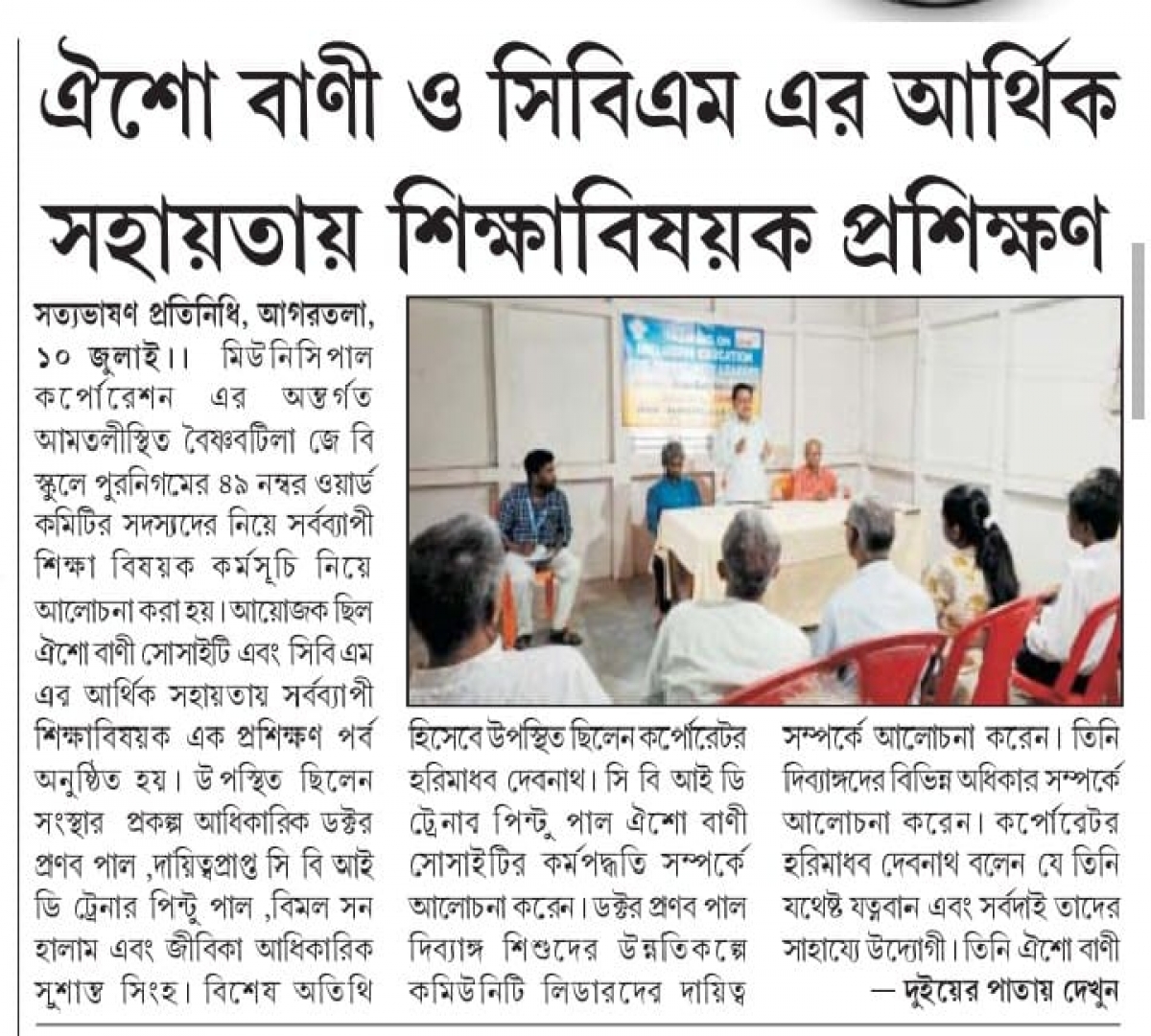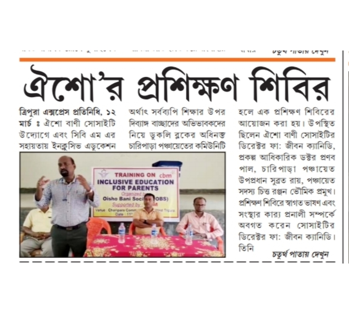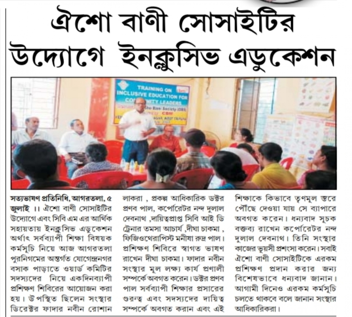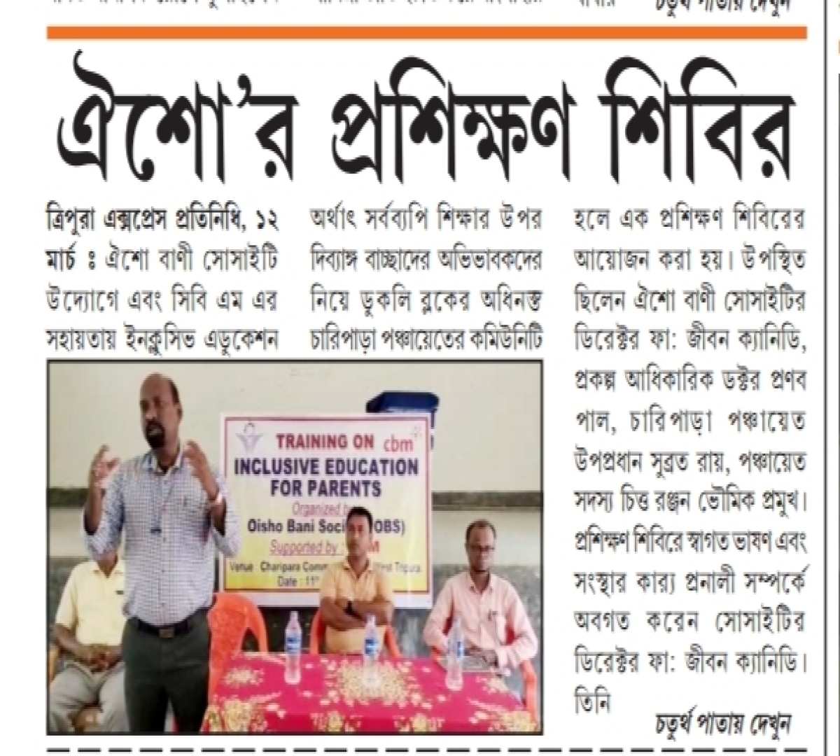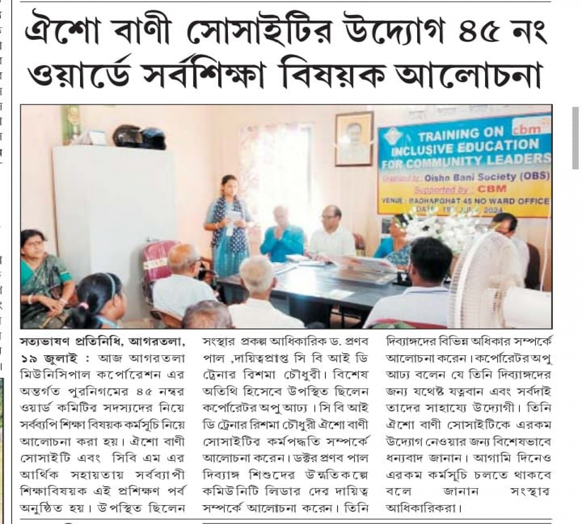 Oisho Bani Society organised Training on cbm Inclusive Education for School Management Committee