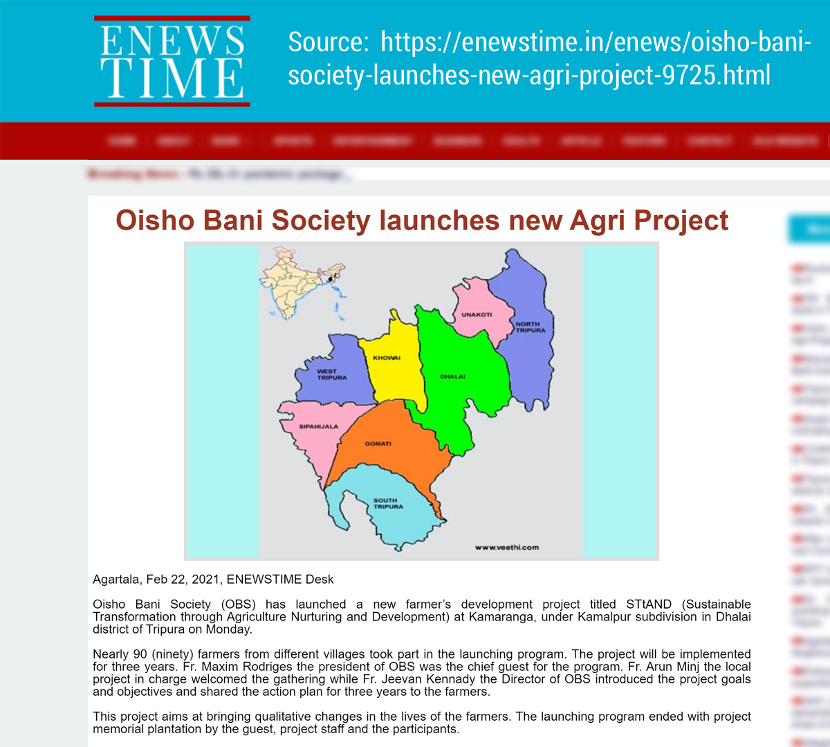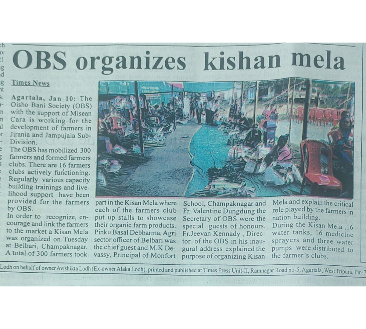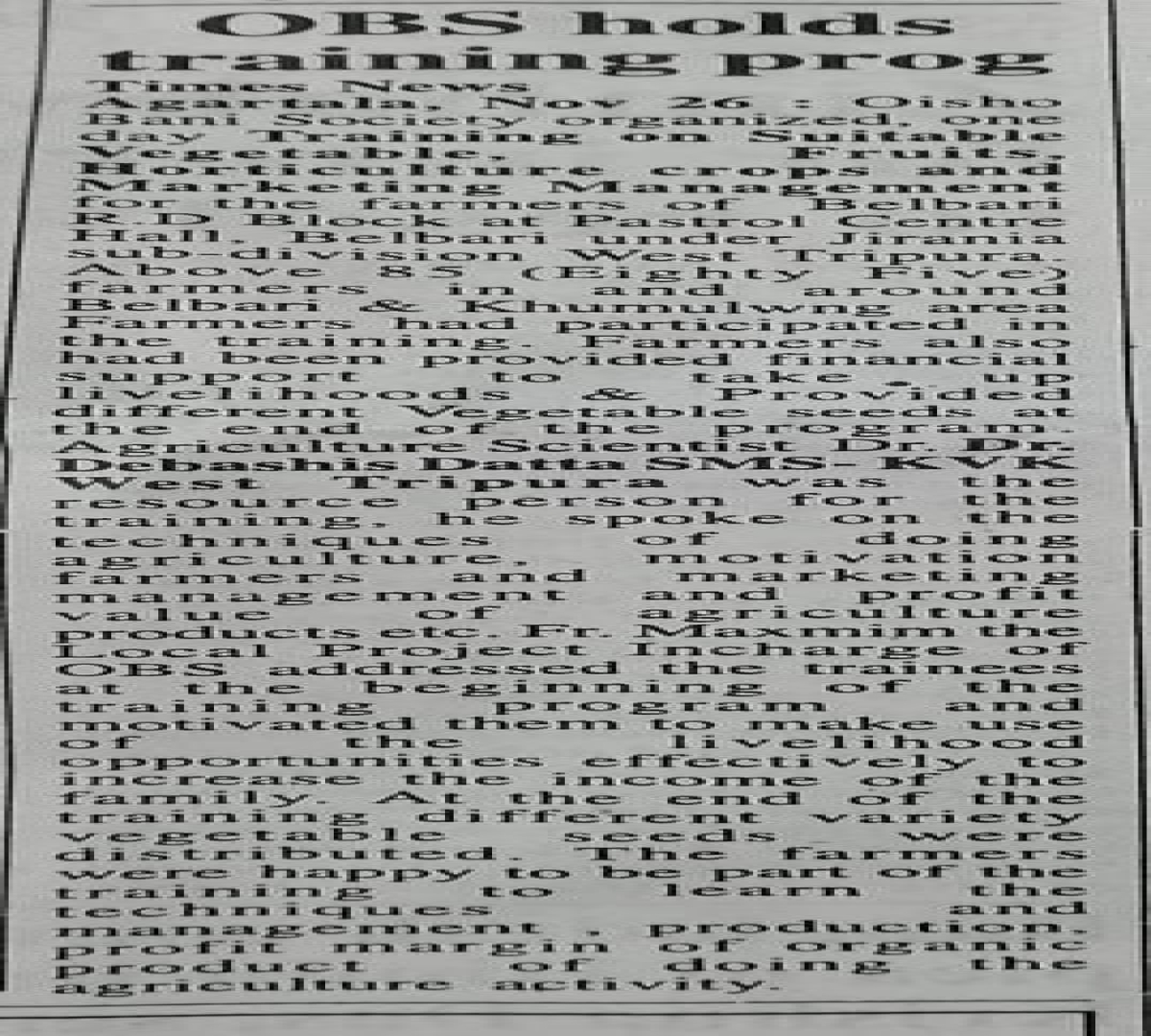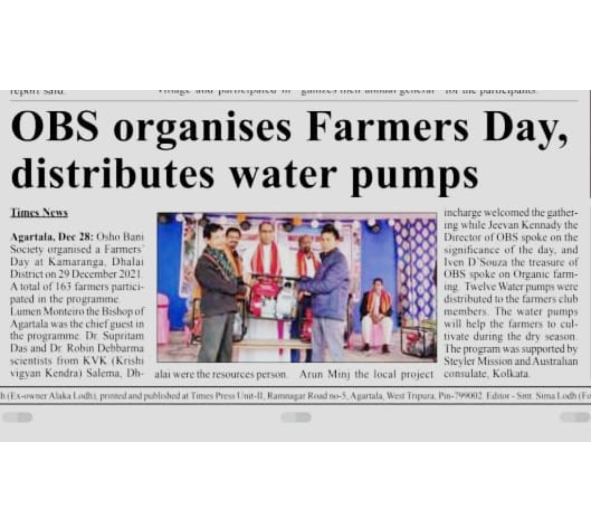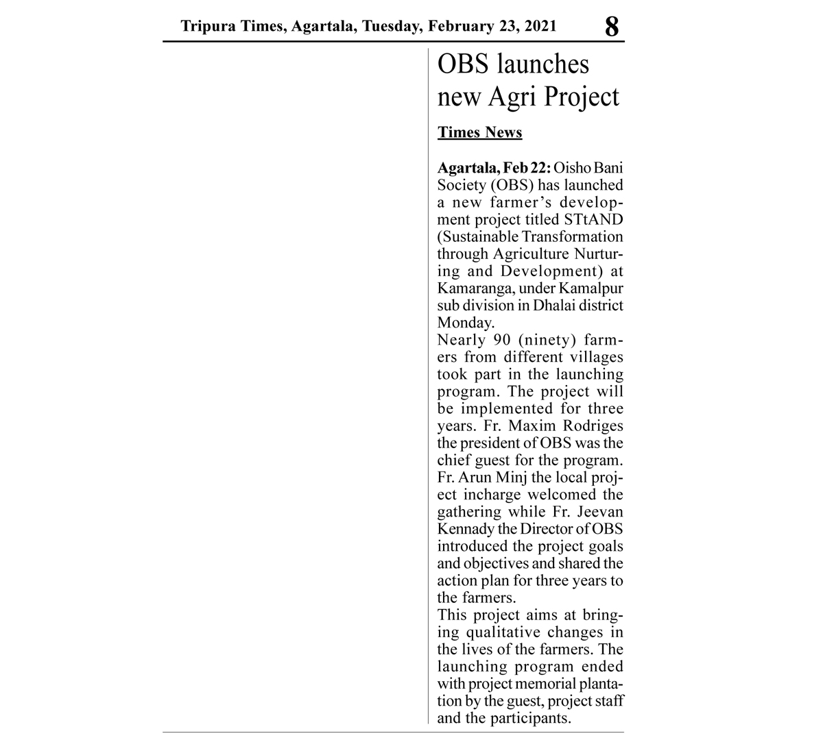 OBS launches new Agri Project (Tripura Times- 23.02.2021)