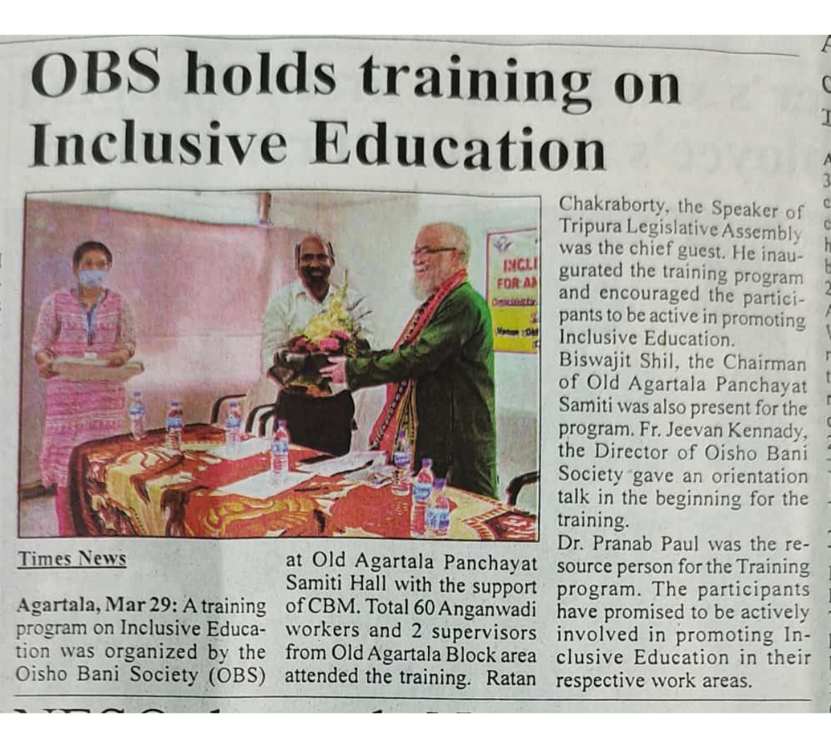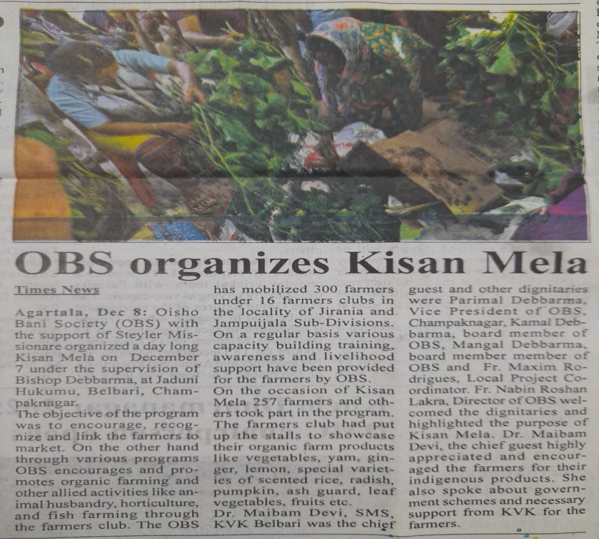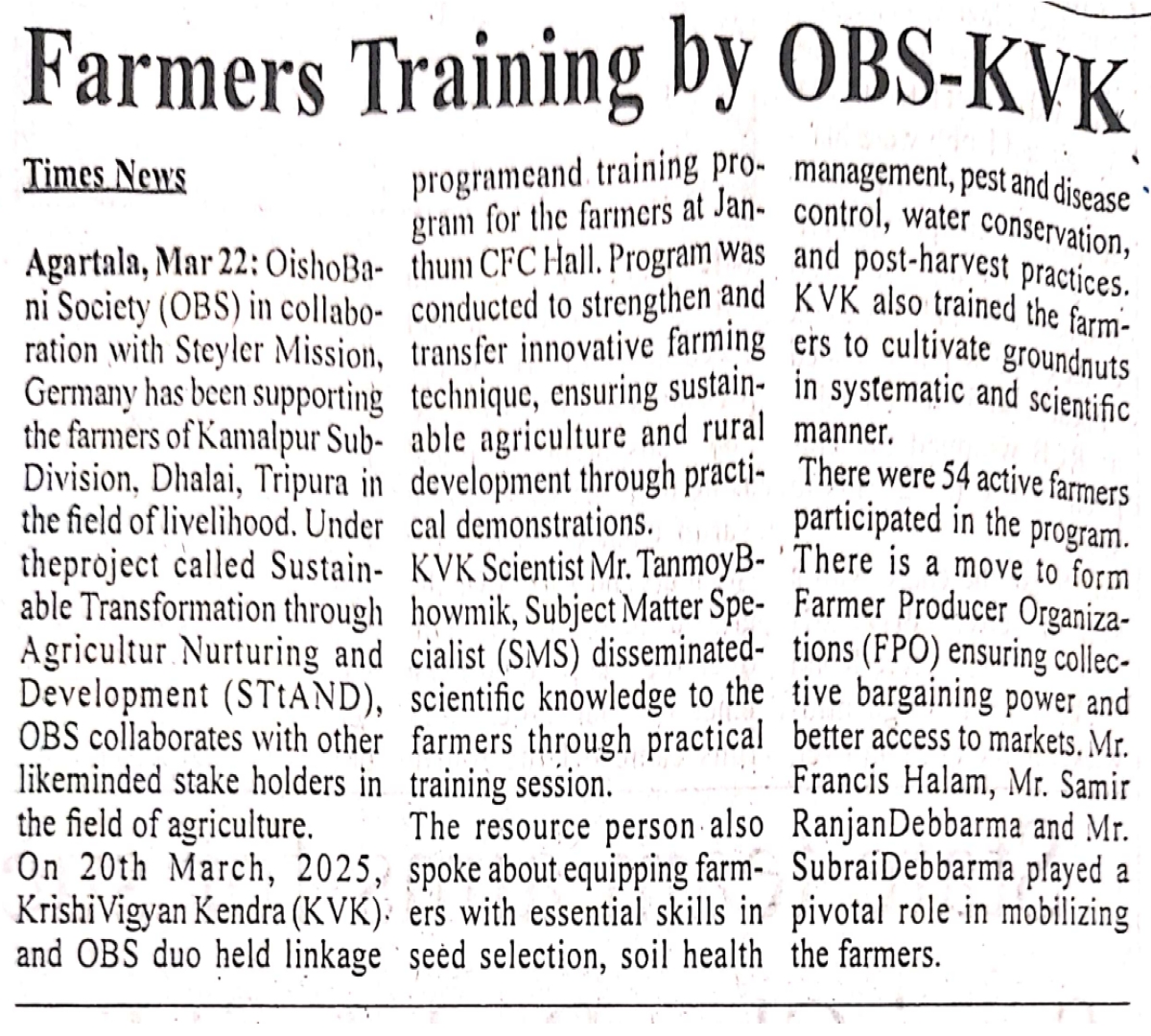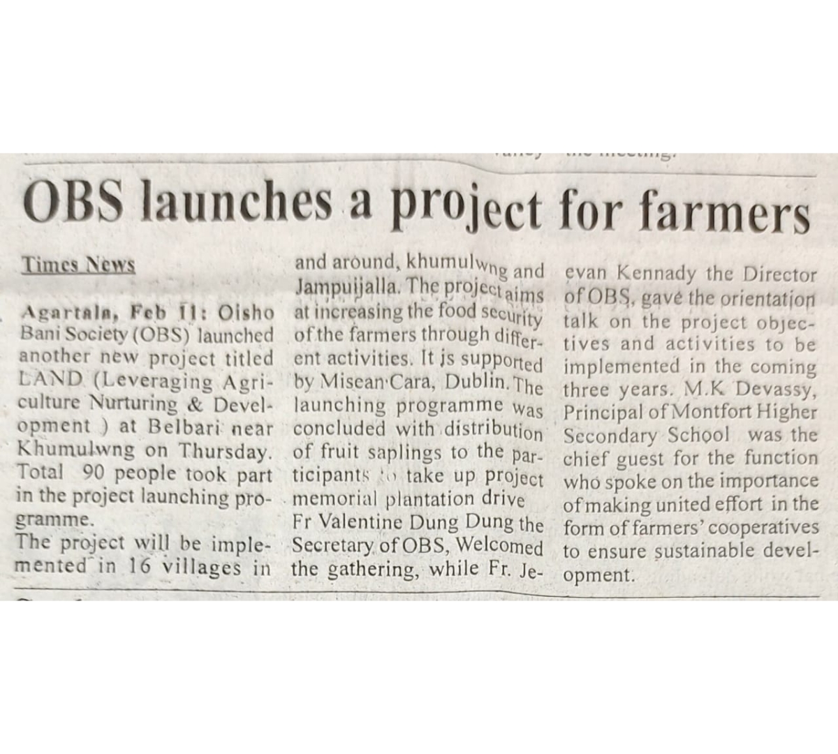 OBS launches new Agri Project (Tripura Times- 23.02.2021)