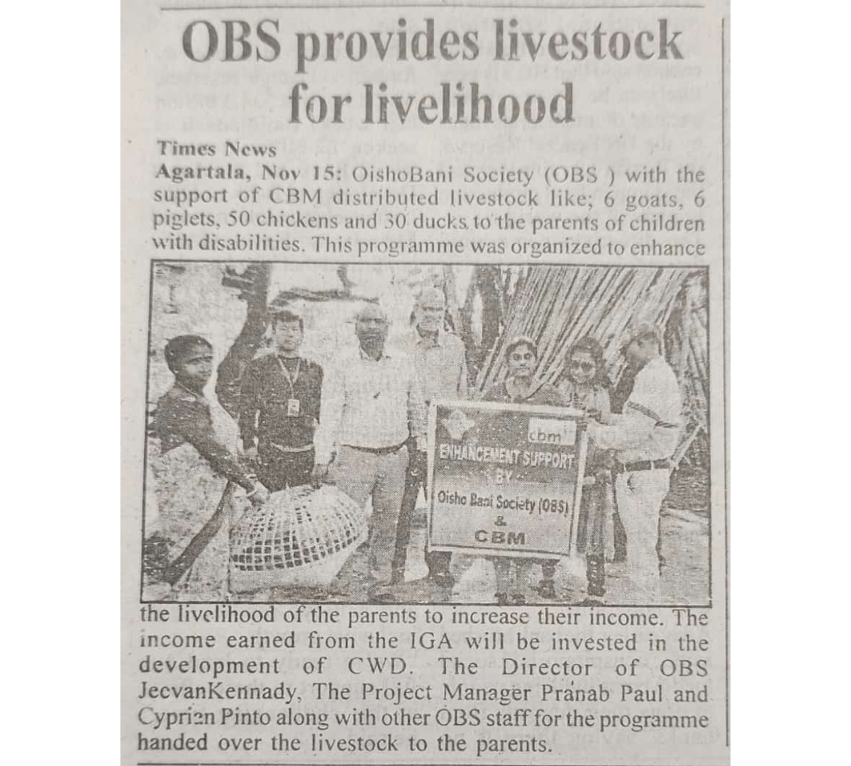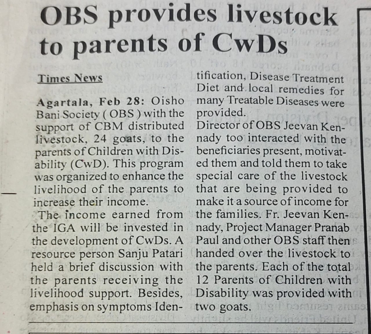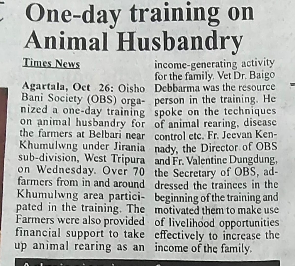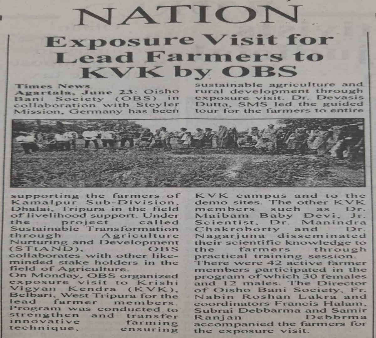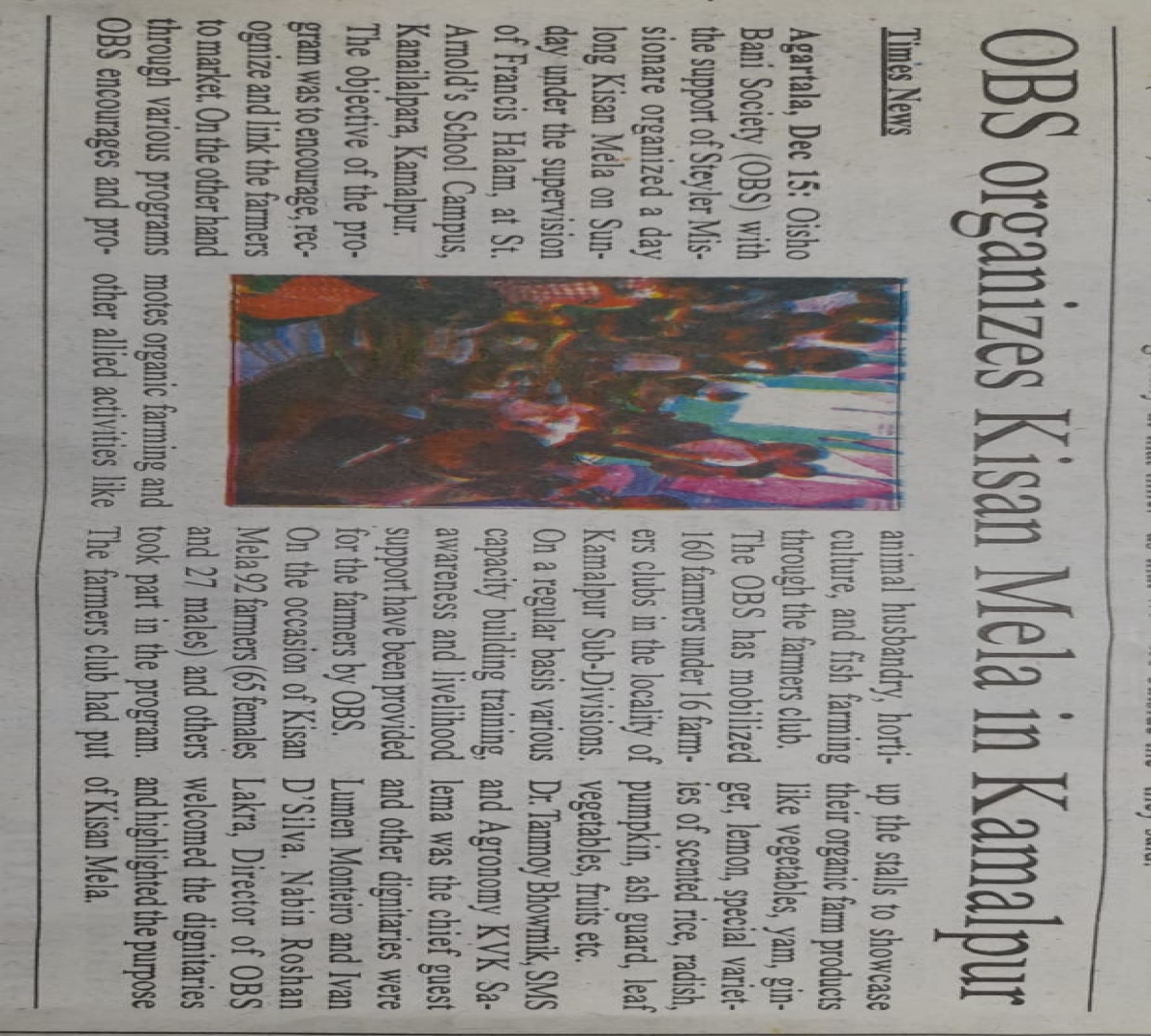 OBS launches new Agri Project (Tripura Times- 23.02.2021)