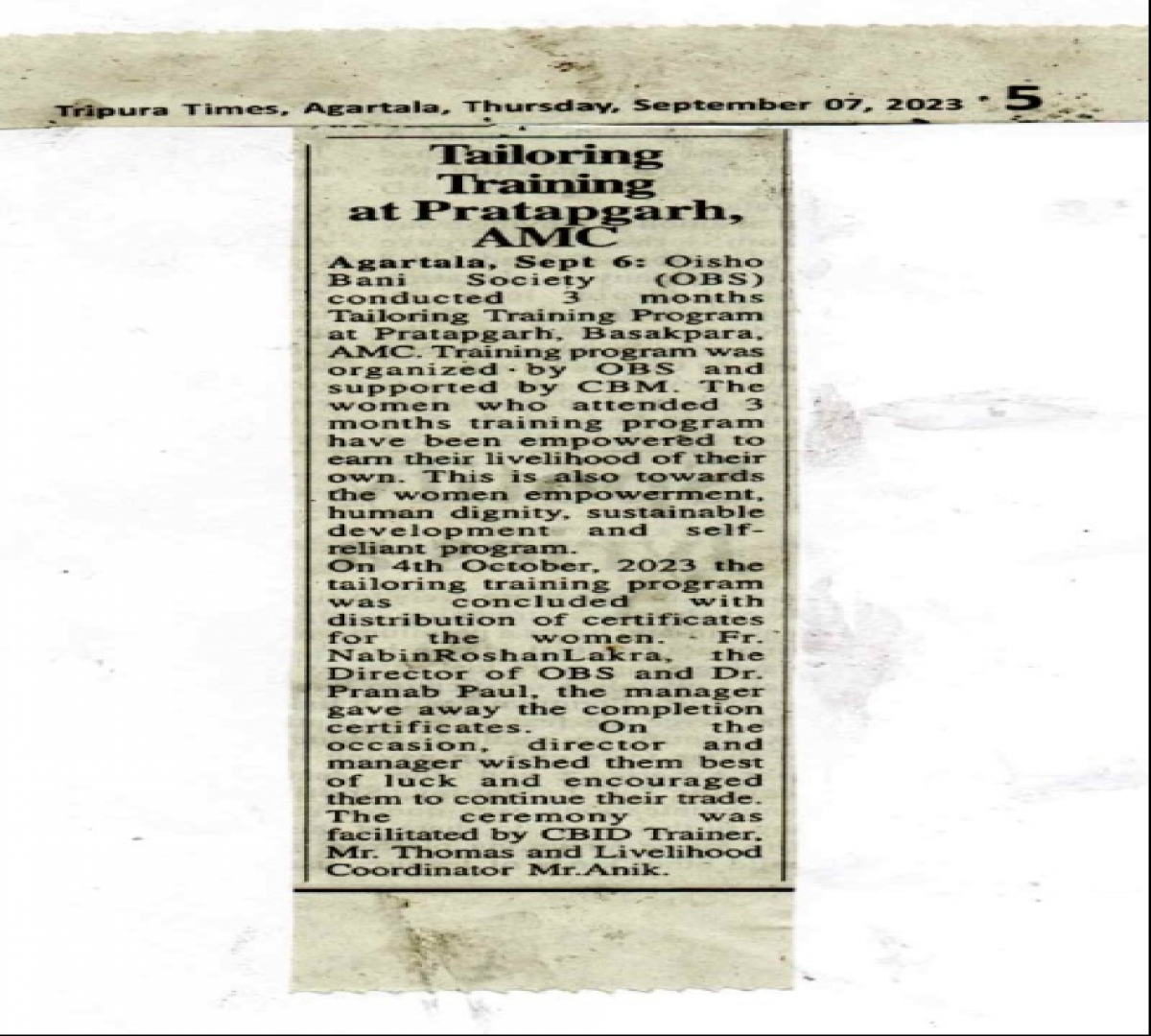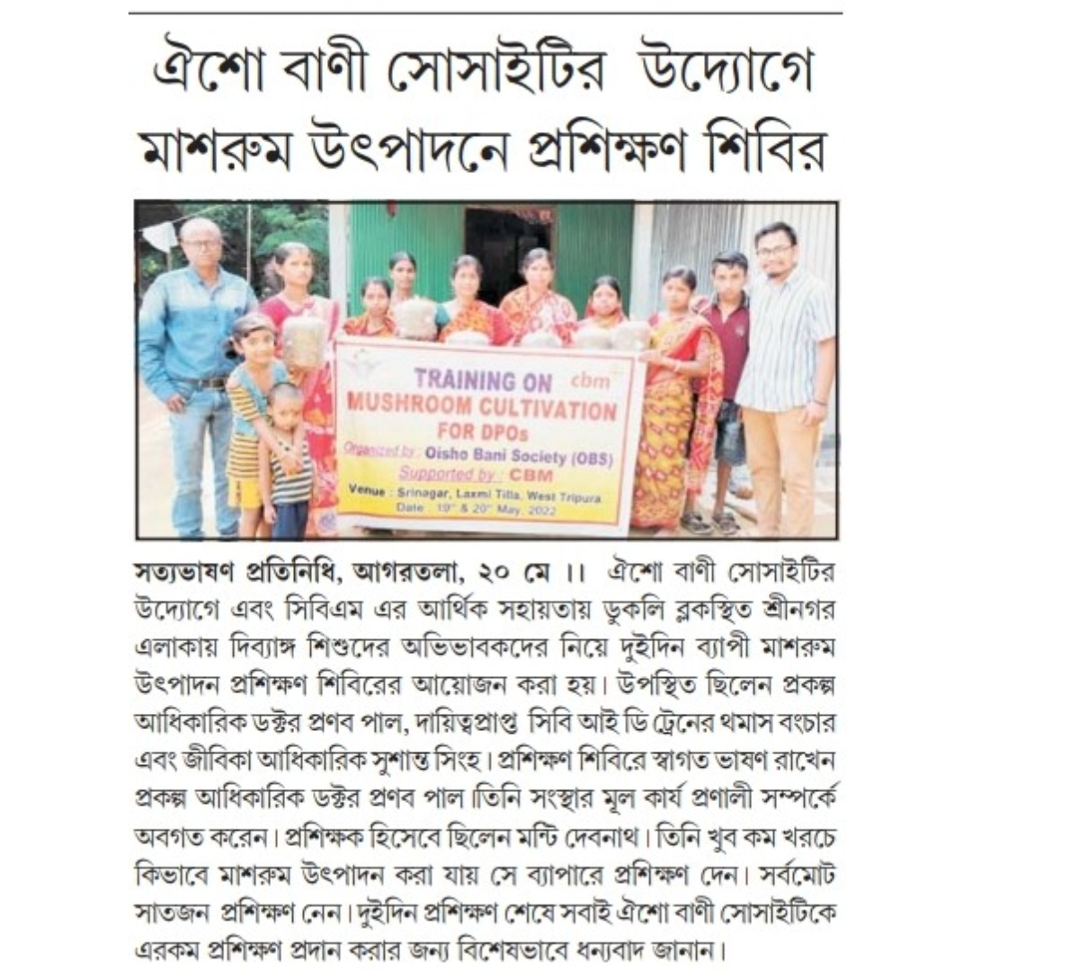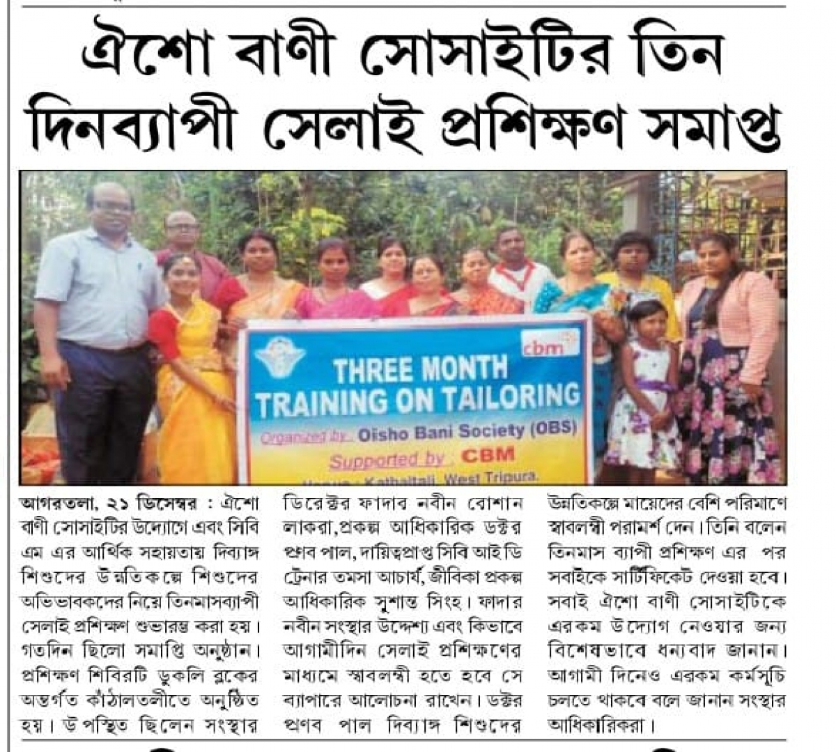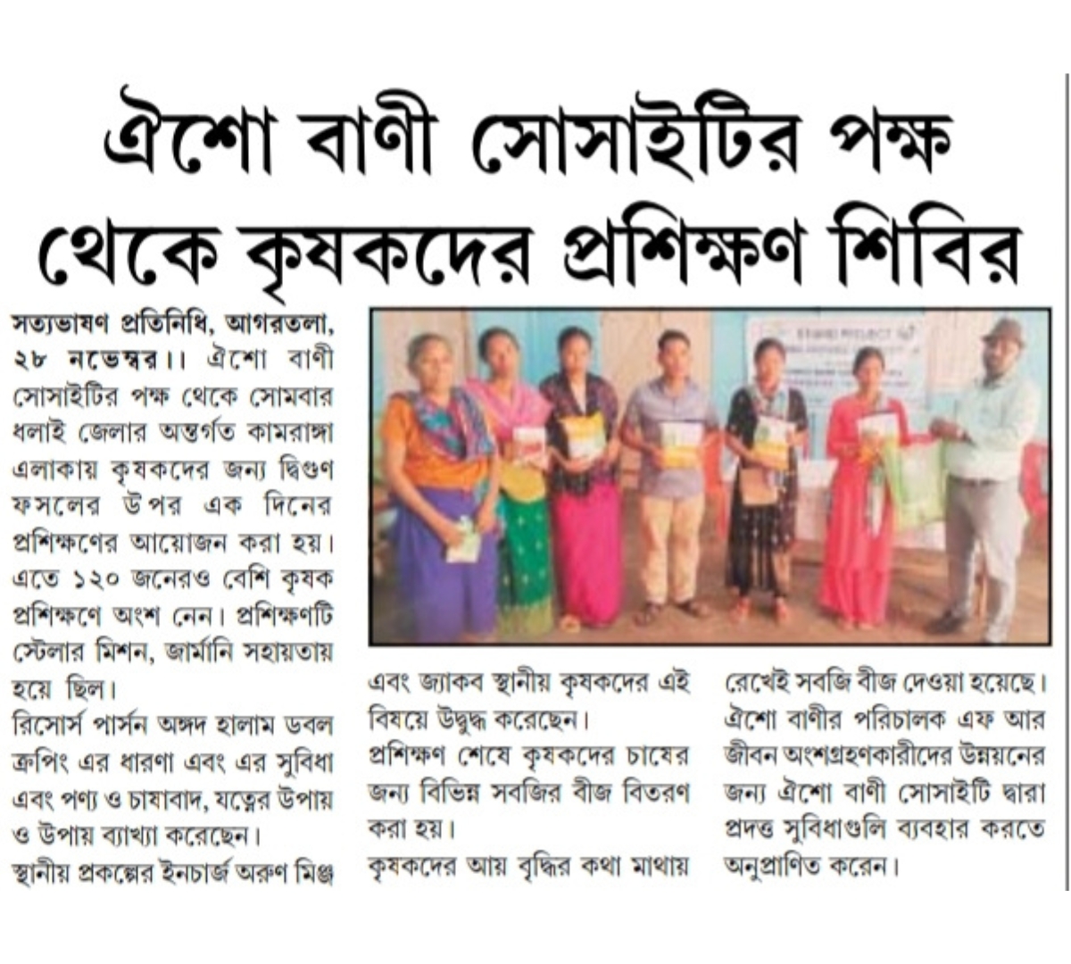 OBS launches new Agri Project (Tripura Times- 23.02.2021)