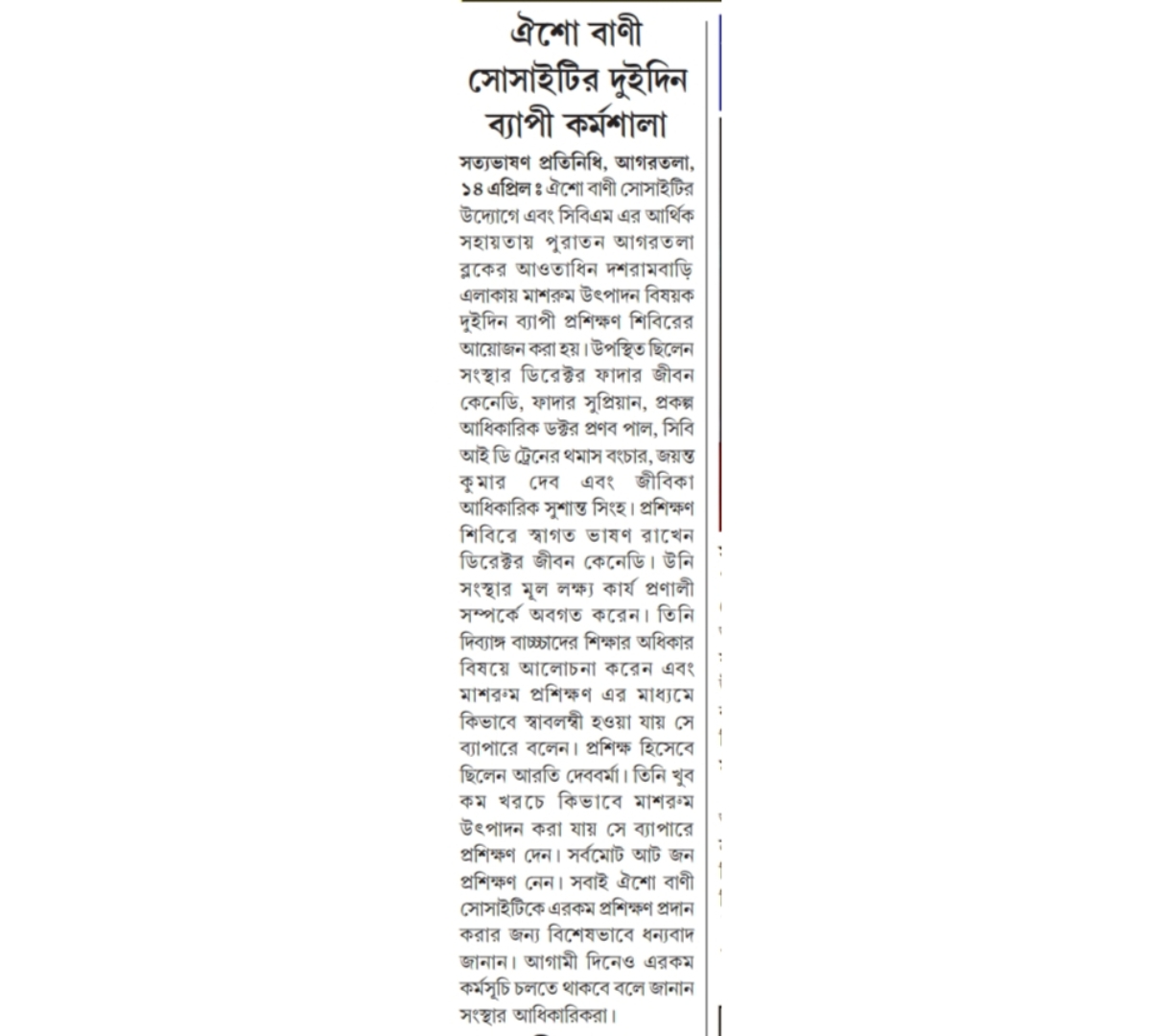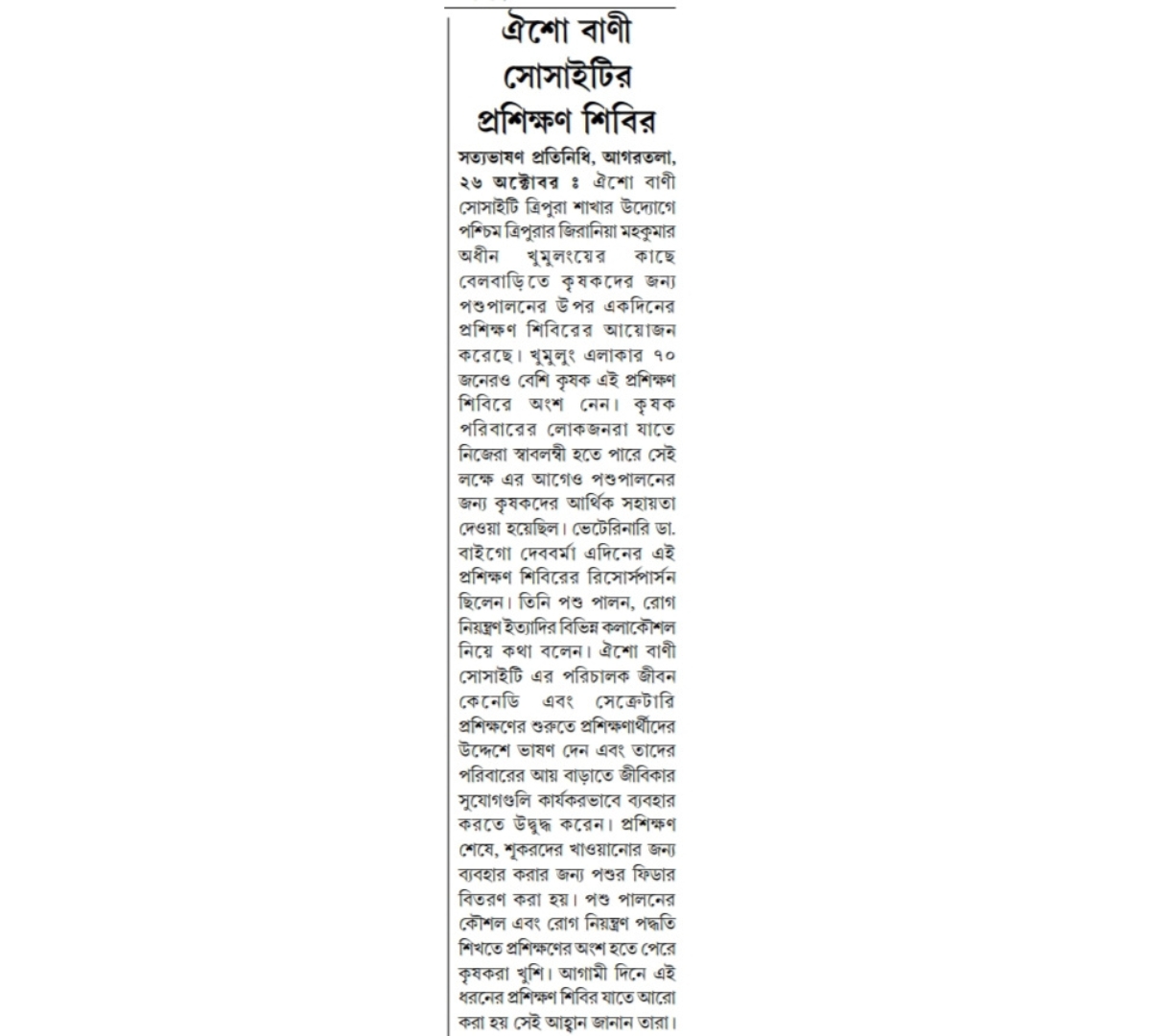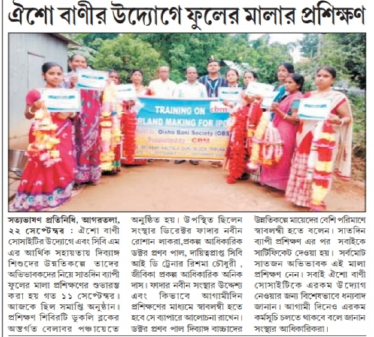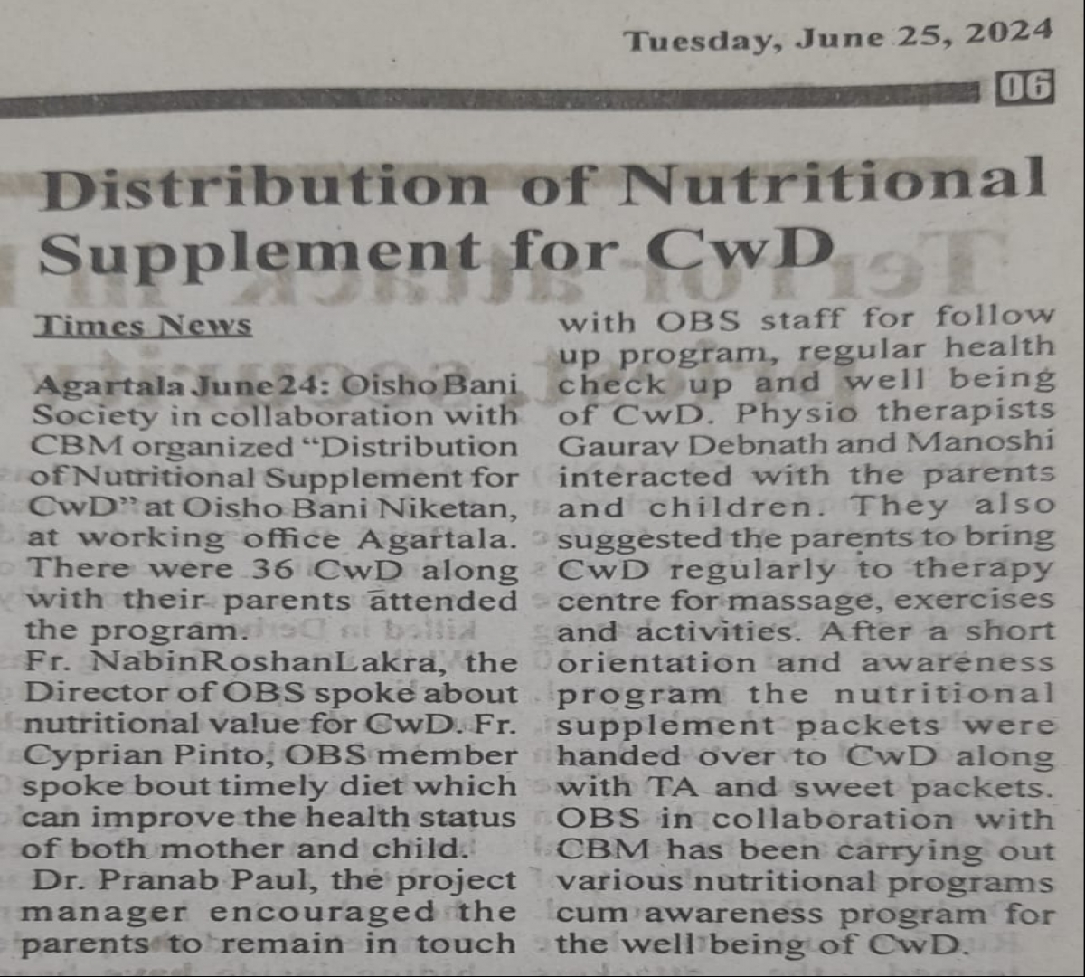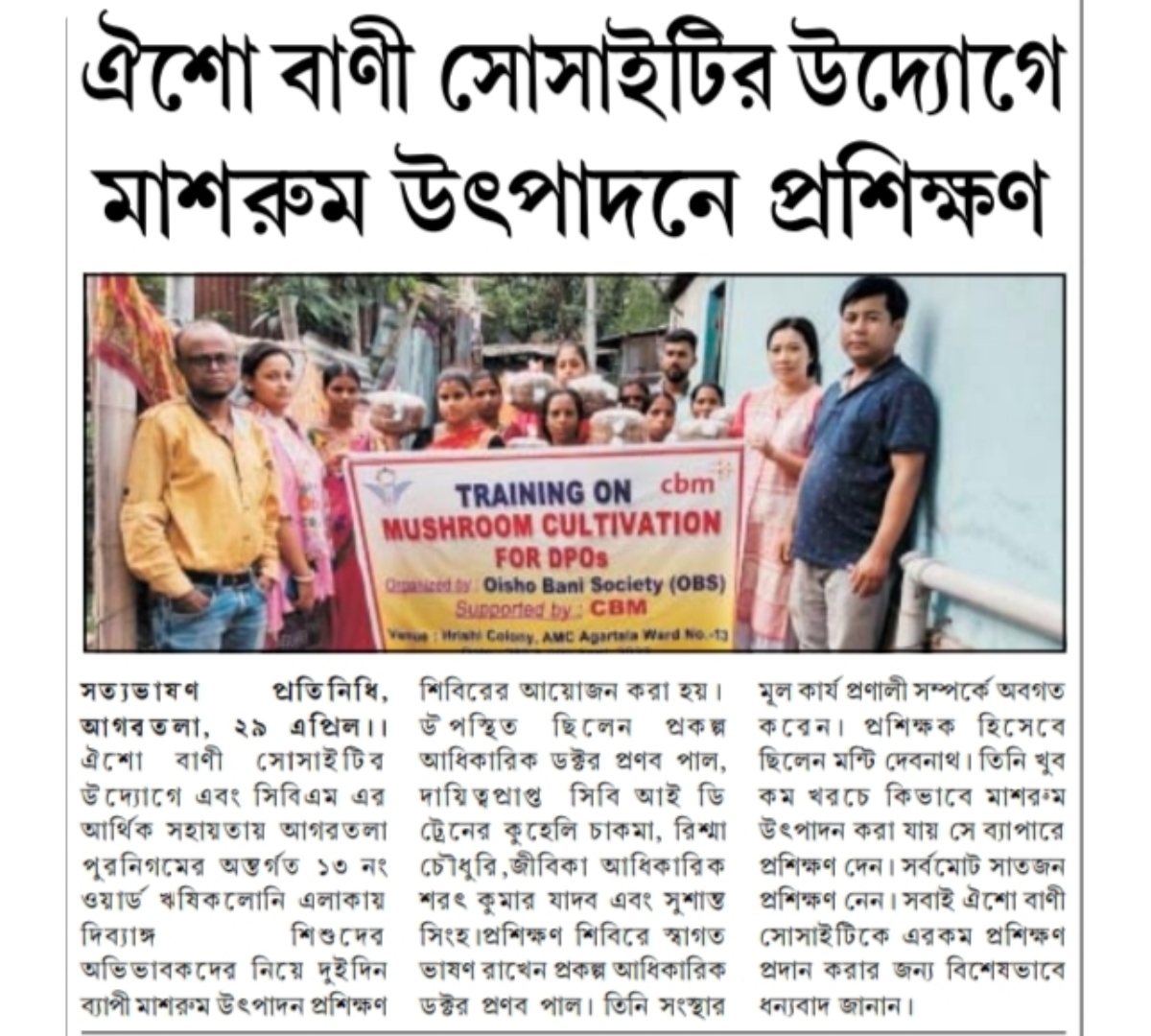 OBS launches new Agri Project (Tripura Times- 23.02.2021)