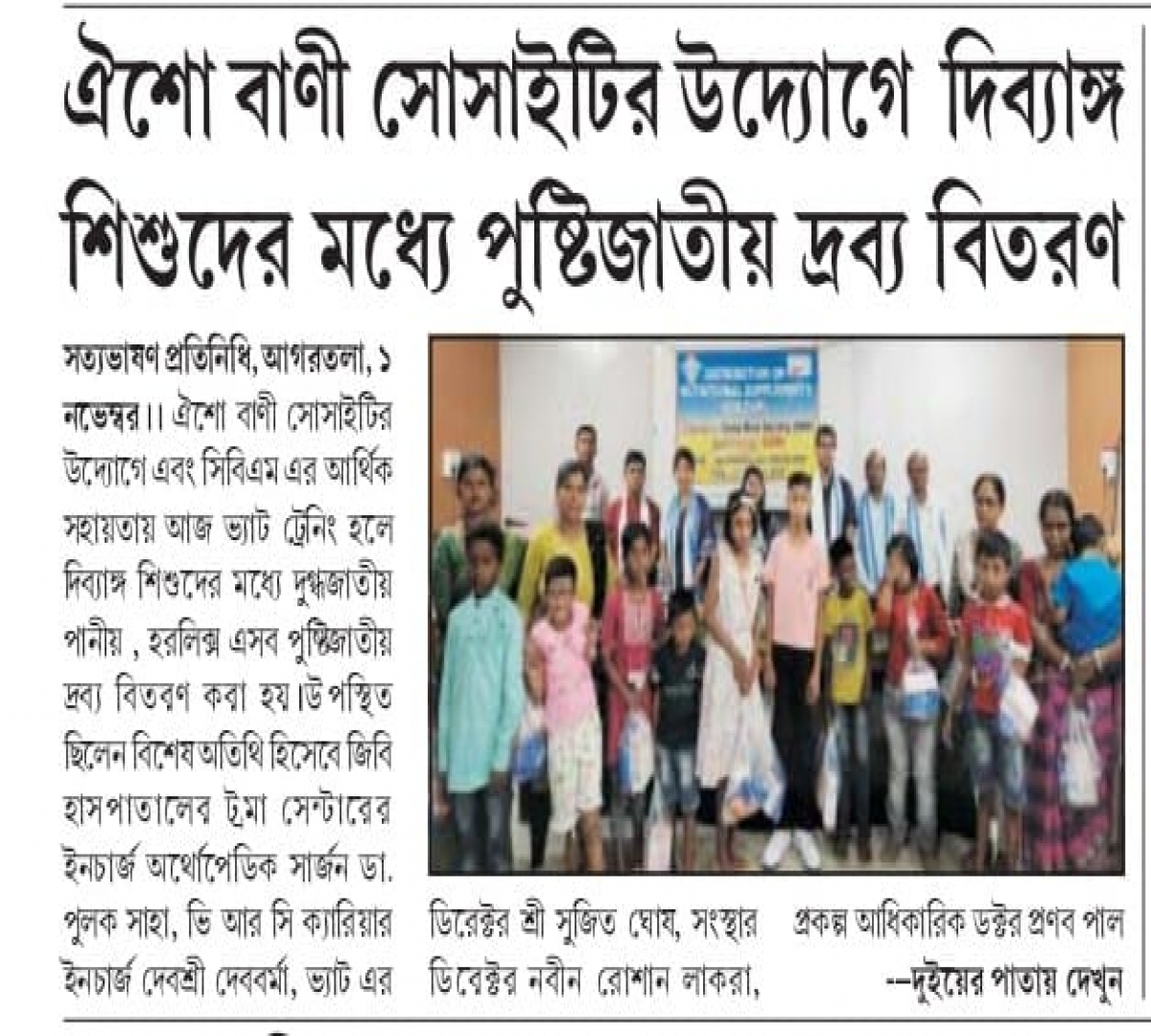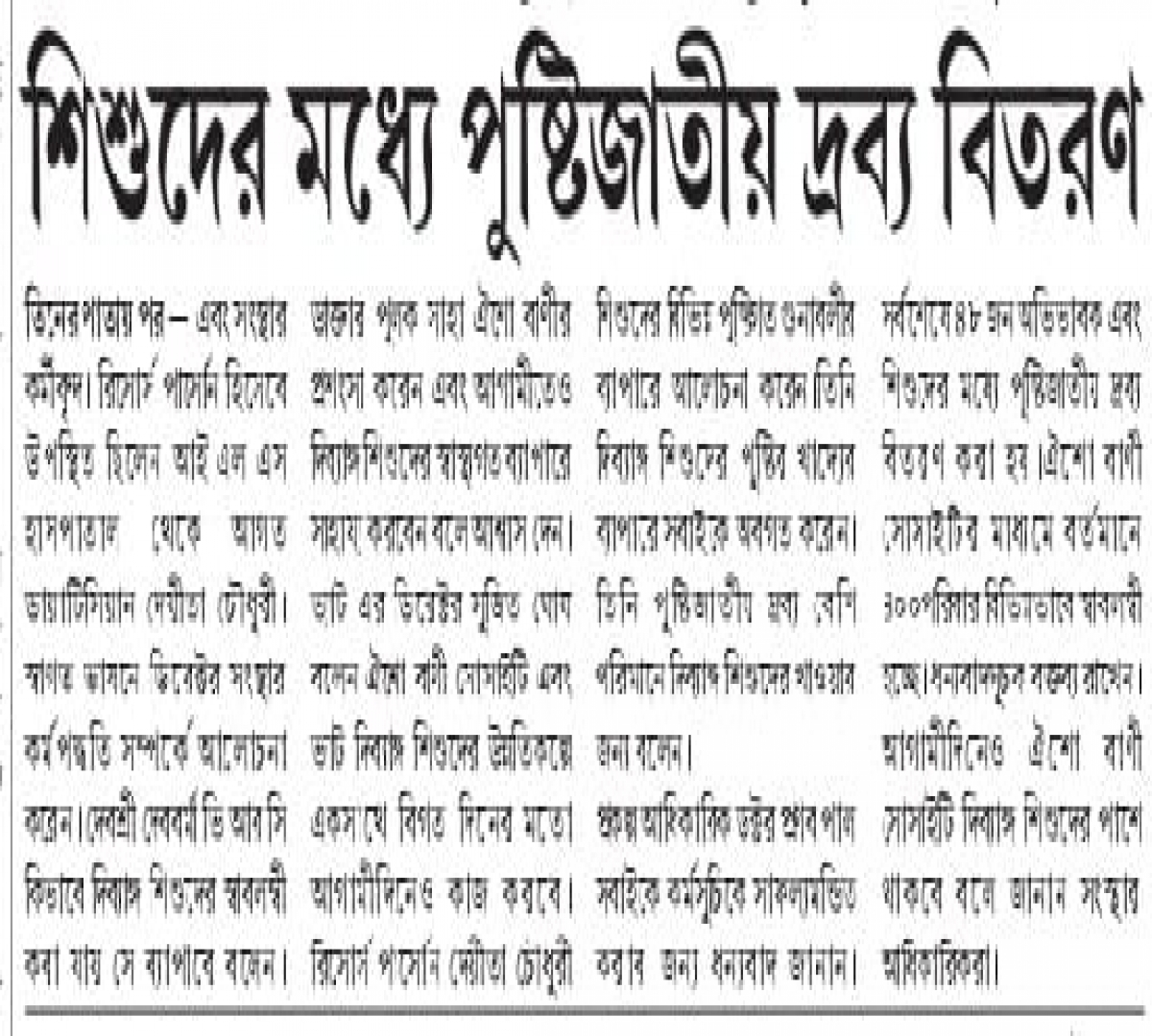 Distribution of nutritional products to Divyang children under the initiative of Oisho Bani Society