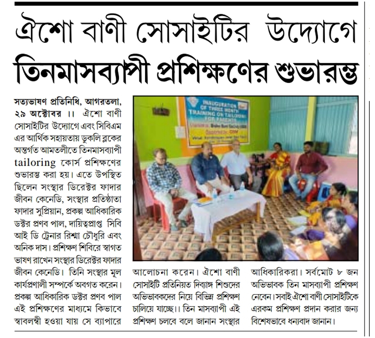 A three-month long training program has begun under the initiative of Oisho Bani Society