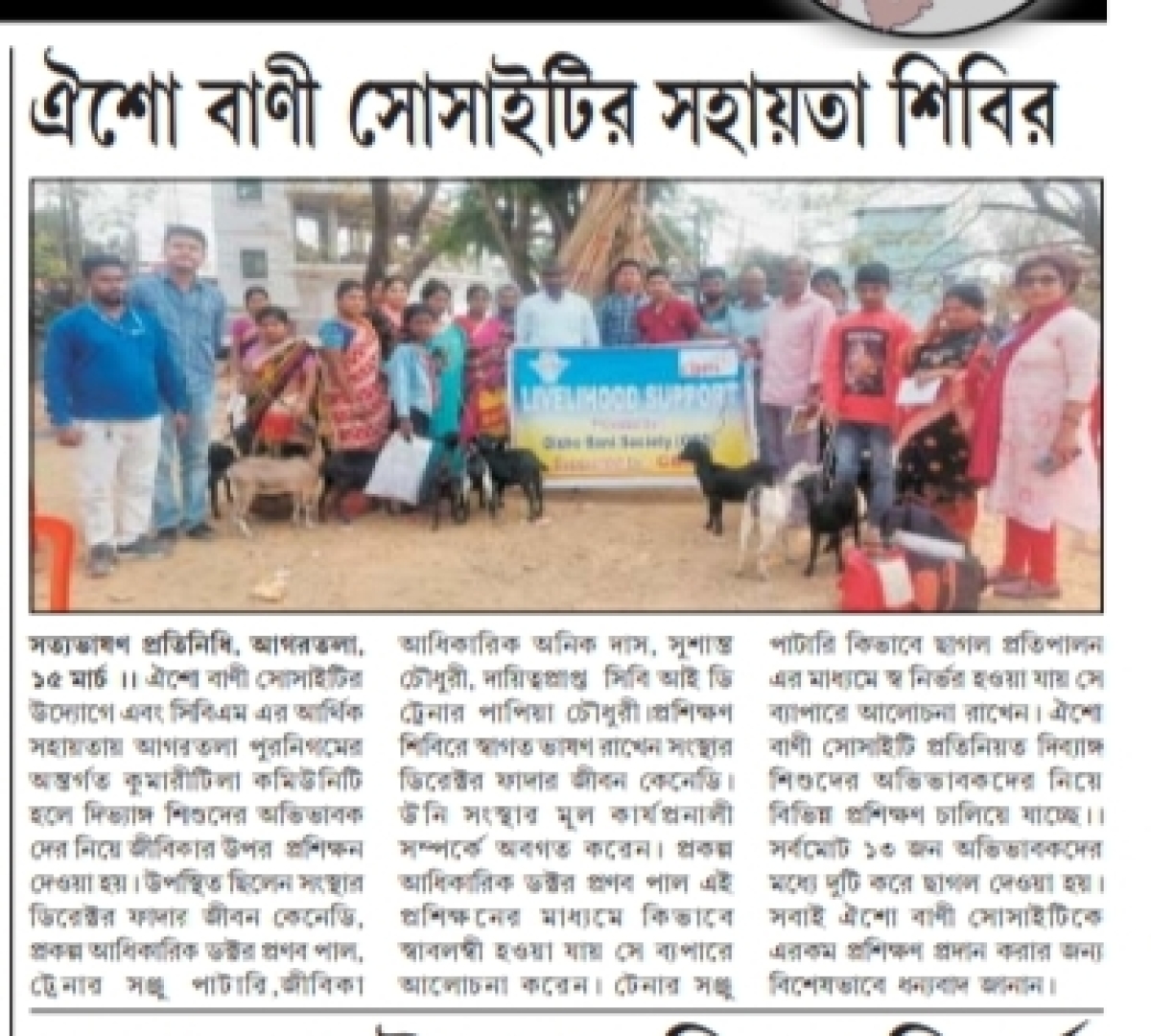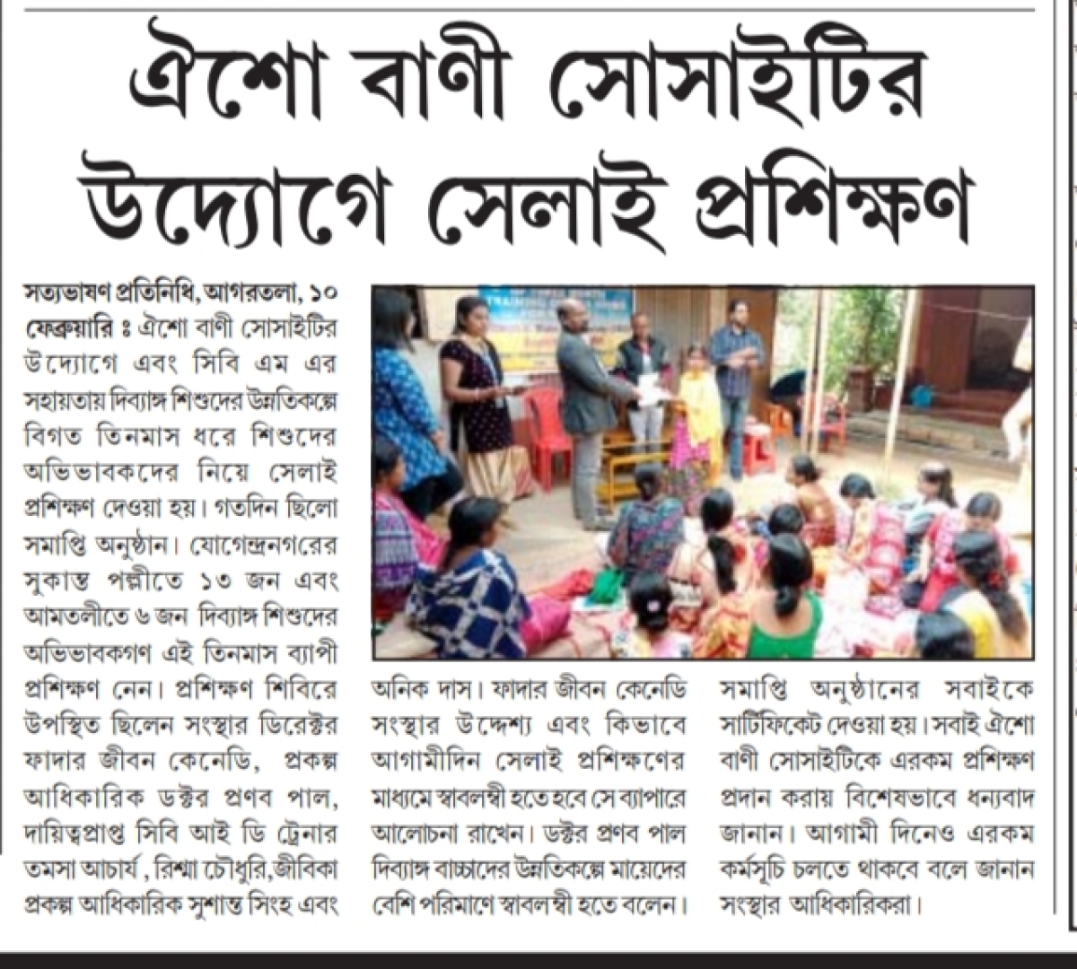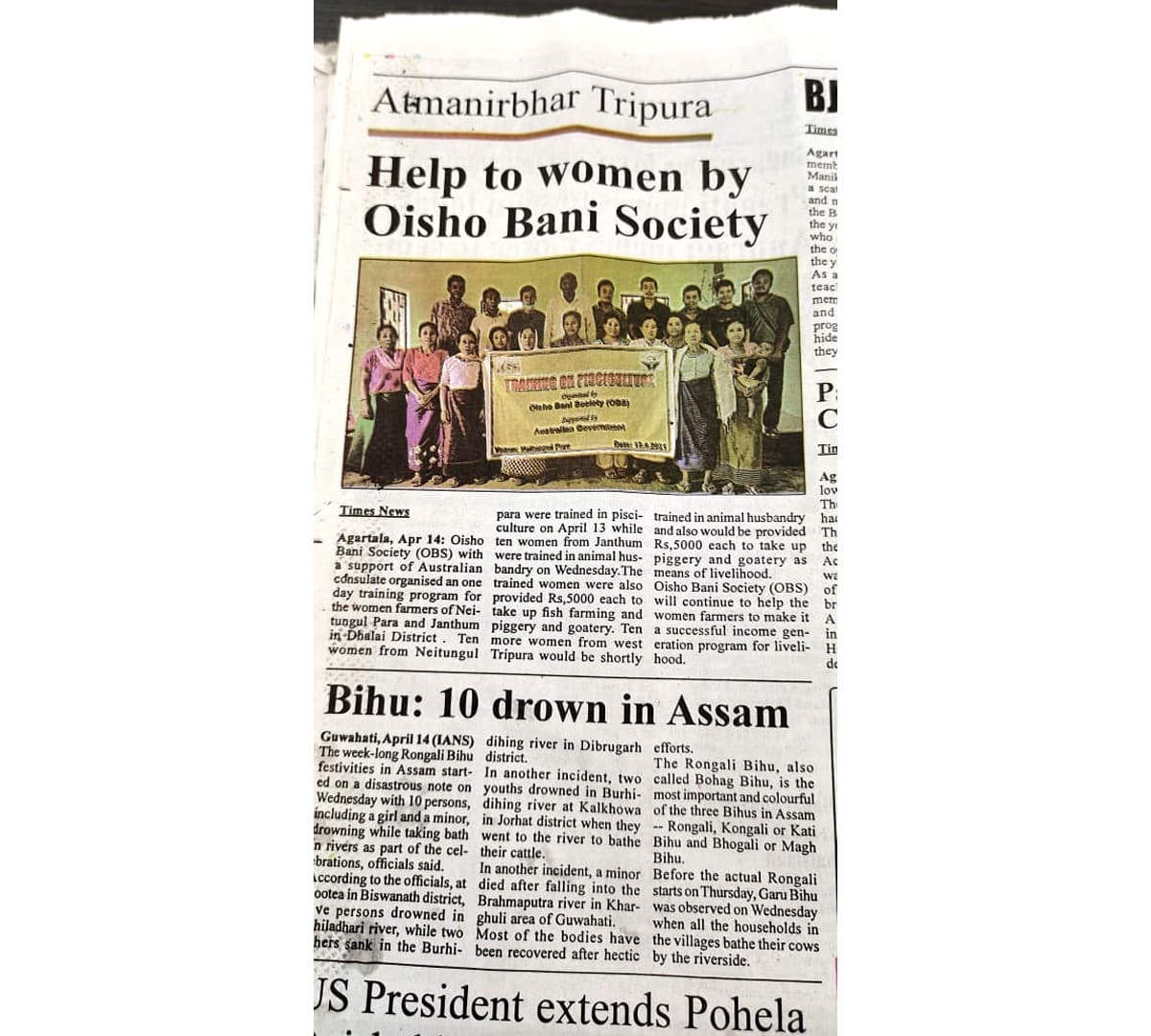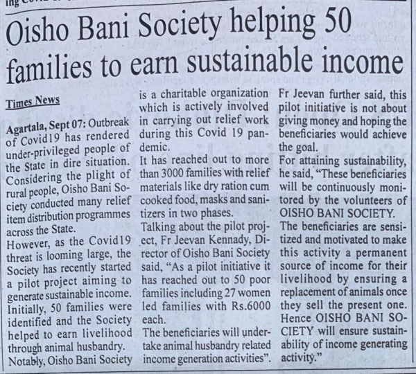 Help to women by Oisho Bani Society (Tripura Times- 14.04.2021)