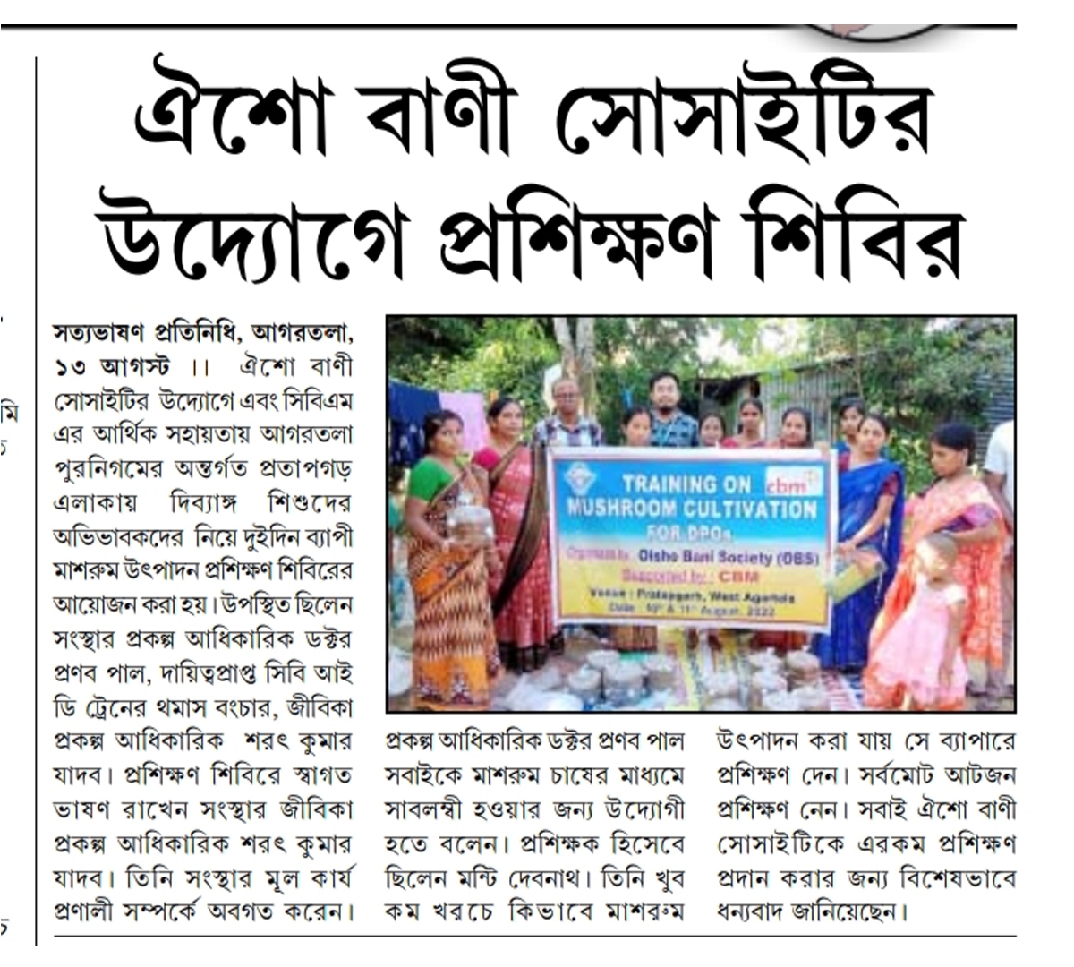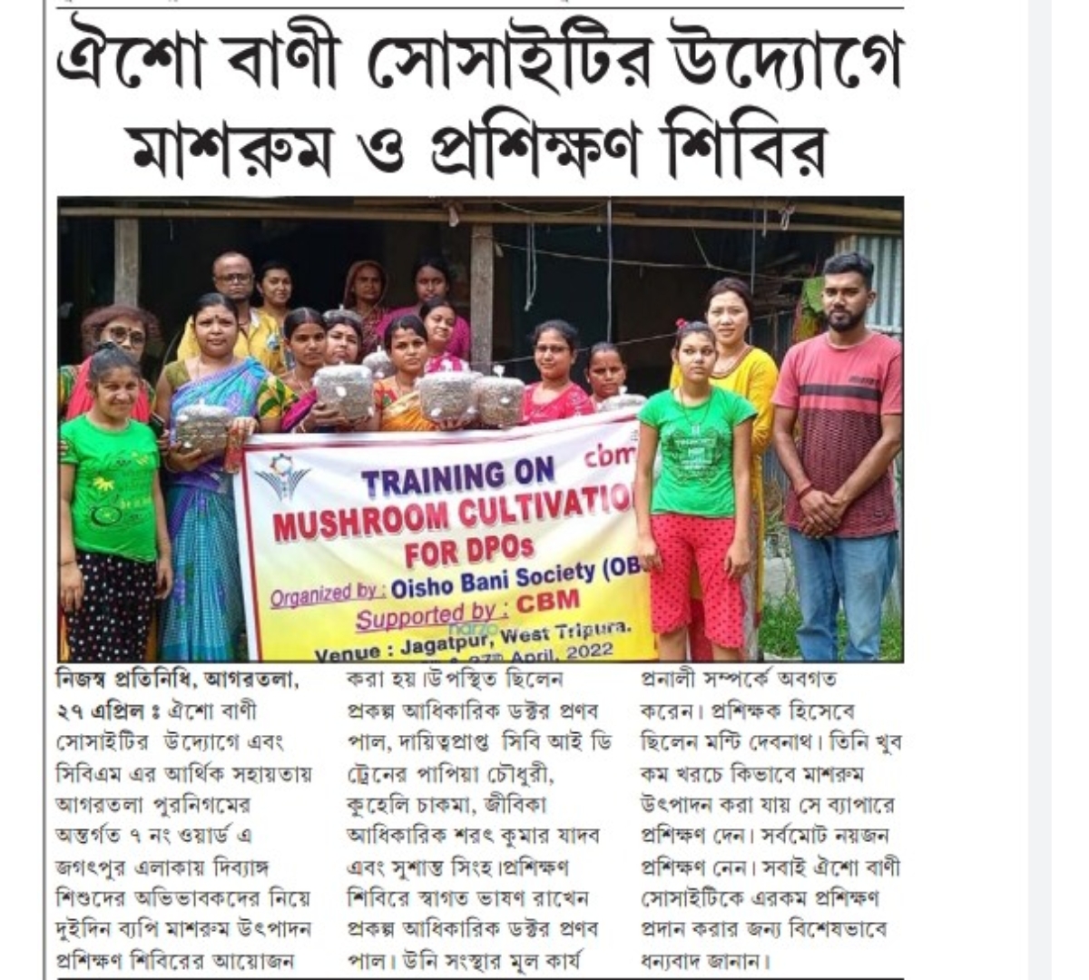 Oisho Bani Society organized a training on Mushroom Cultivation for DPOs