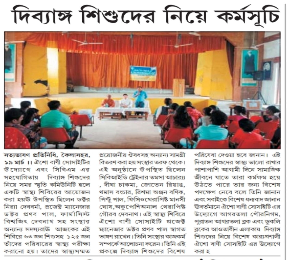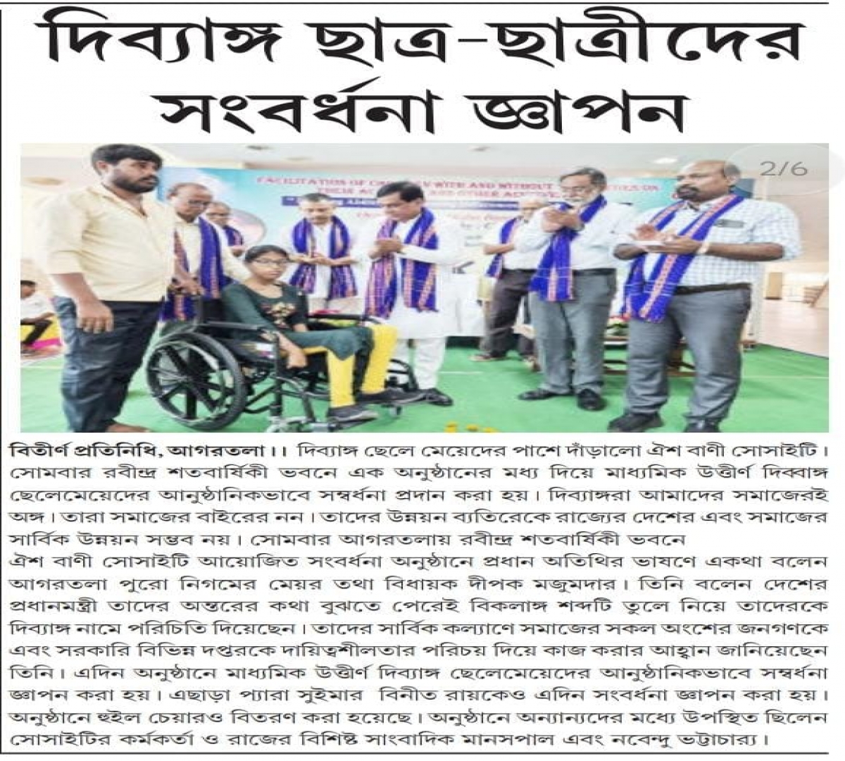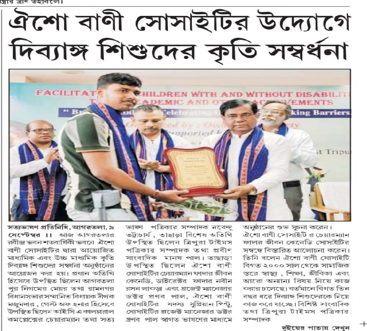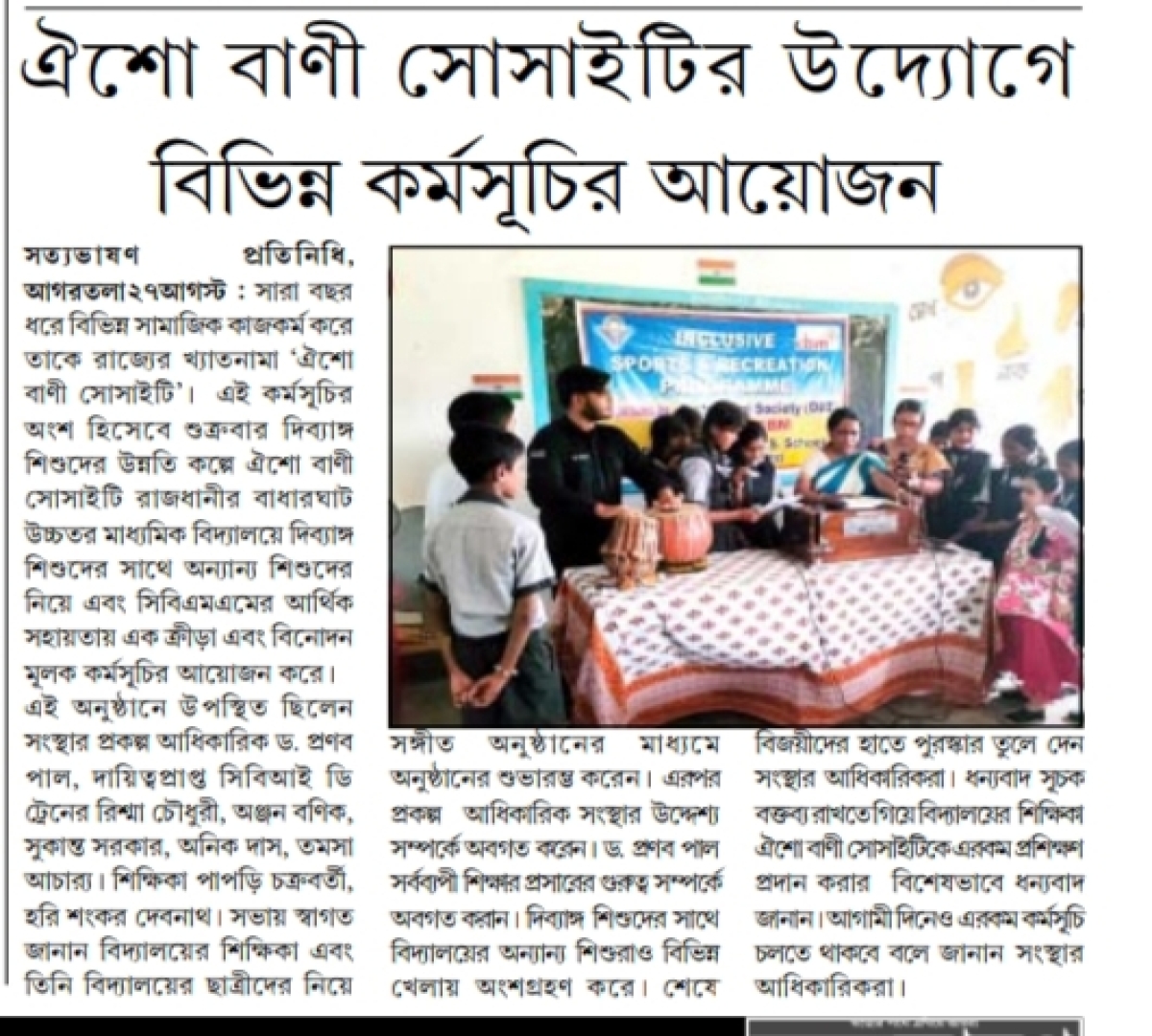 Felicitation program for Children with and without Disabilities conducted in Rabindra Bhavan, Agartala
