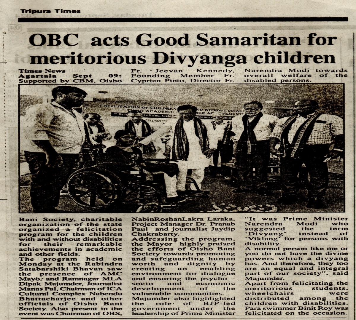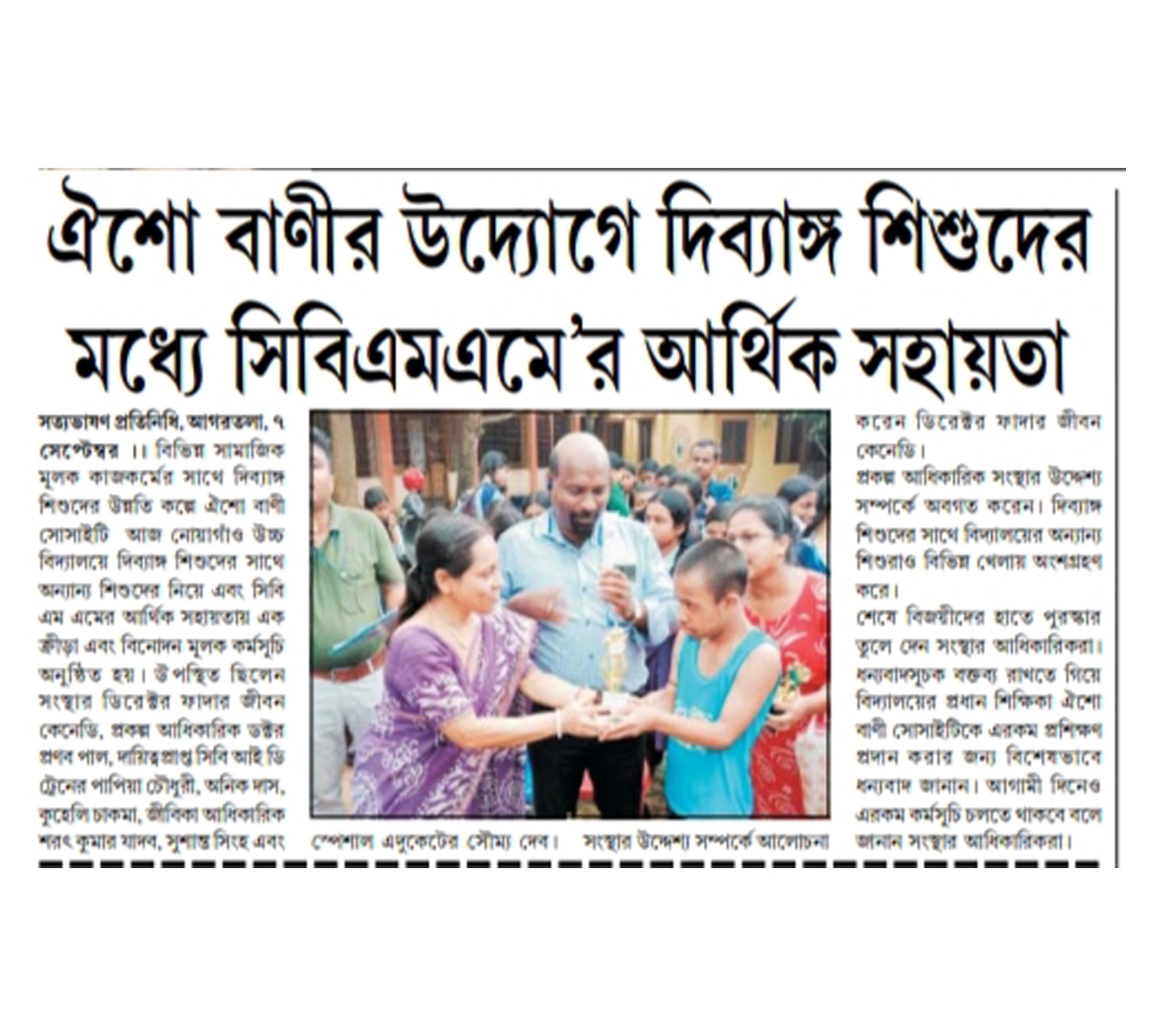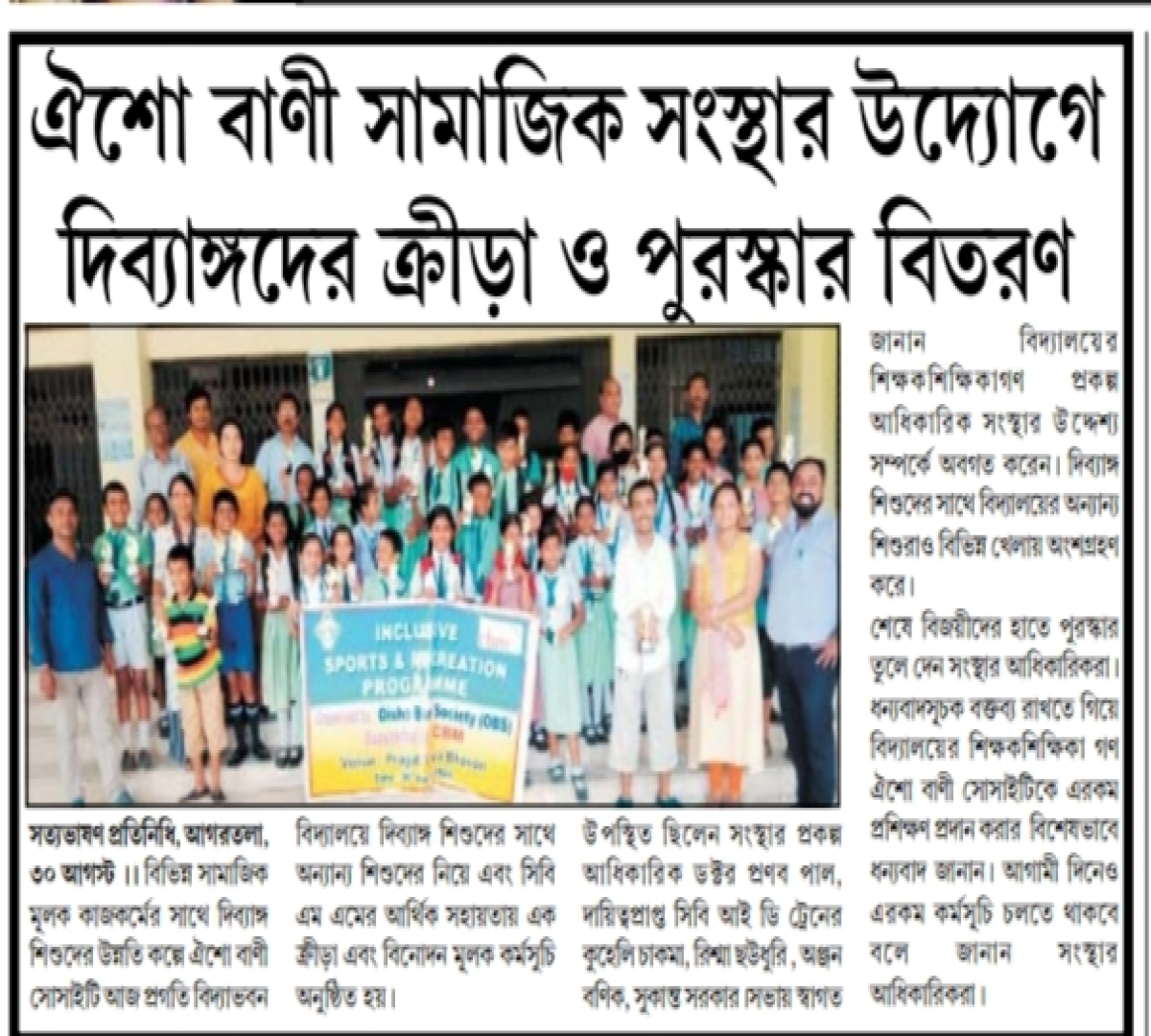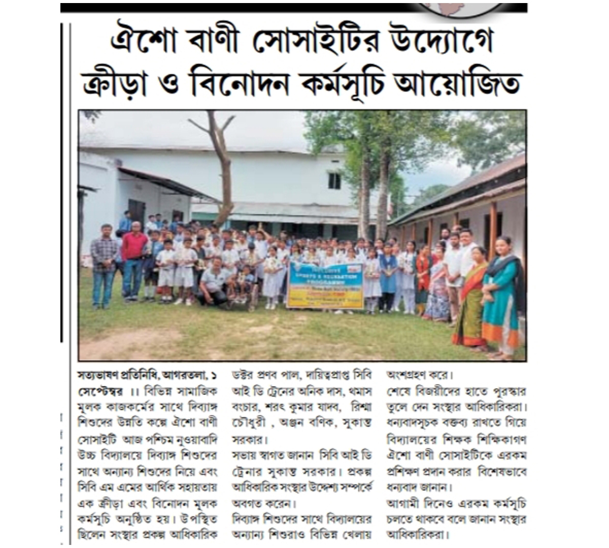 Felicitation program for Children with and without Disabilities conducted in Rabindra Bhavan, Agartala