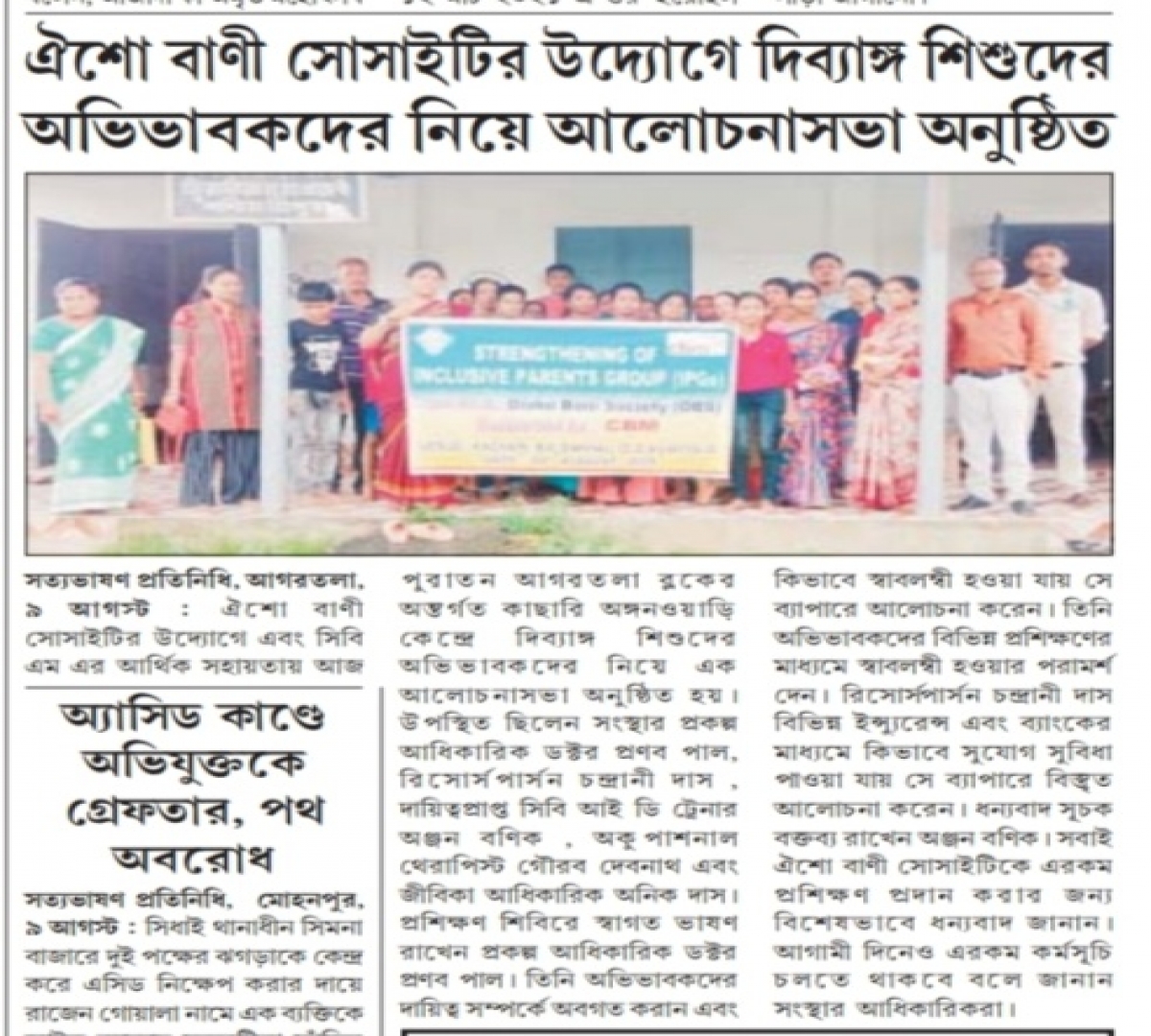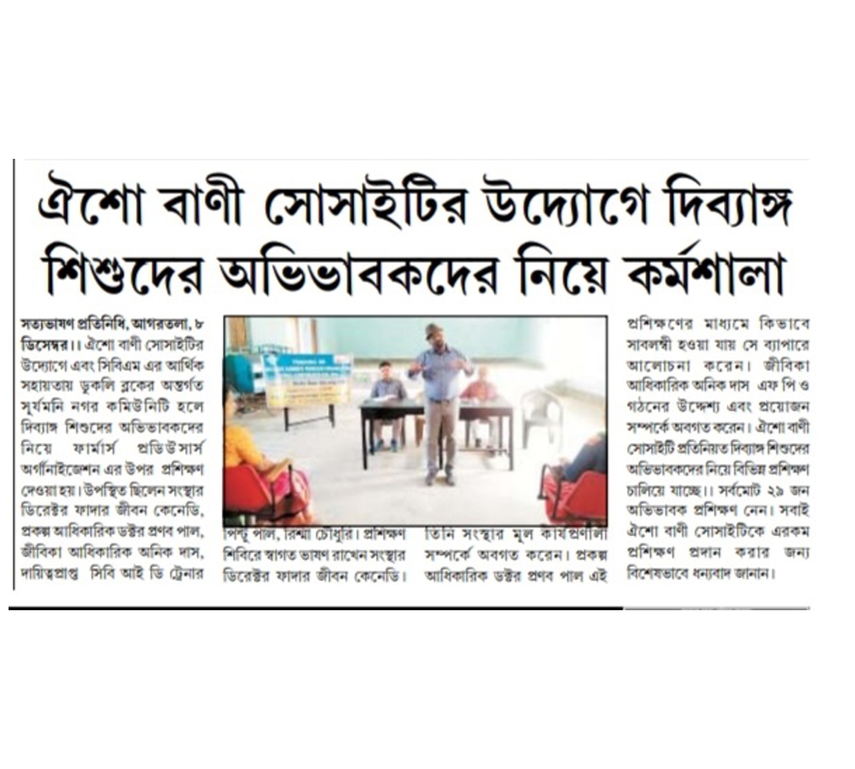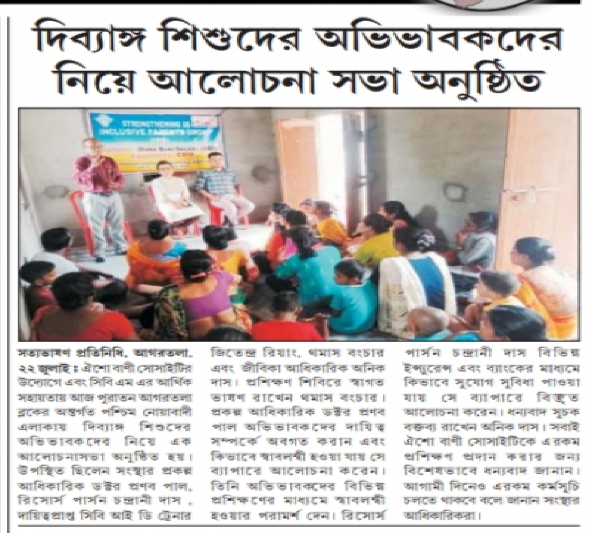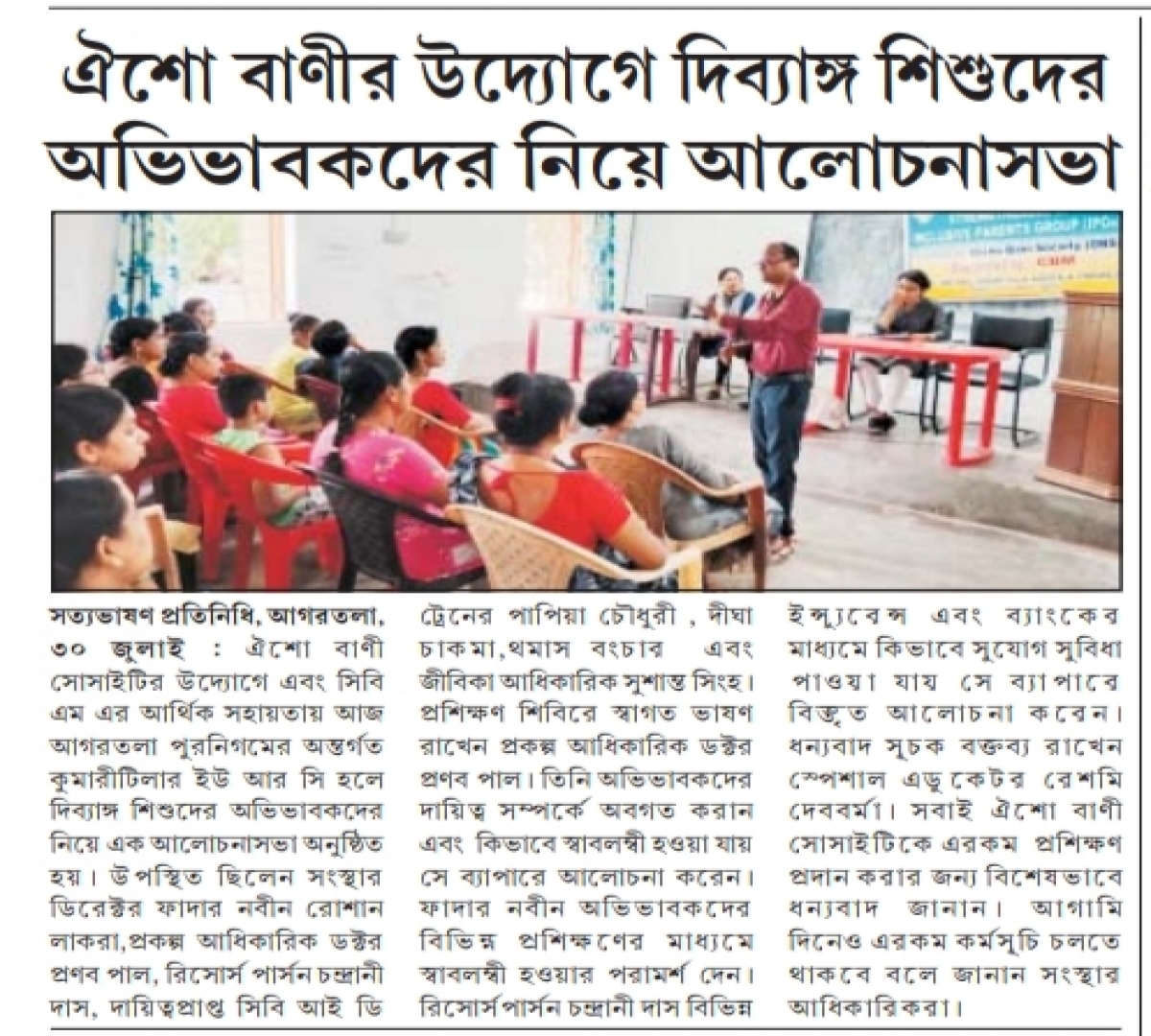 Workshop for parents of divyang children organized by Oisho Bani Society