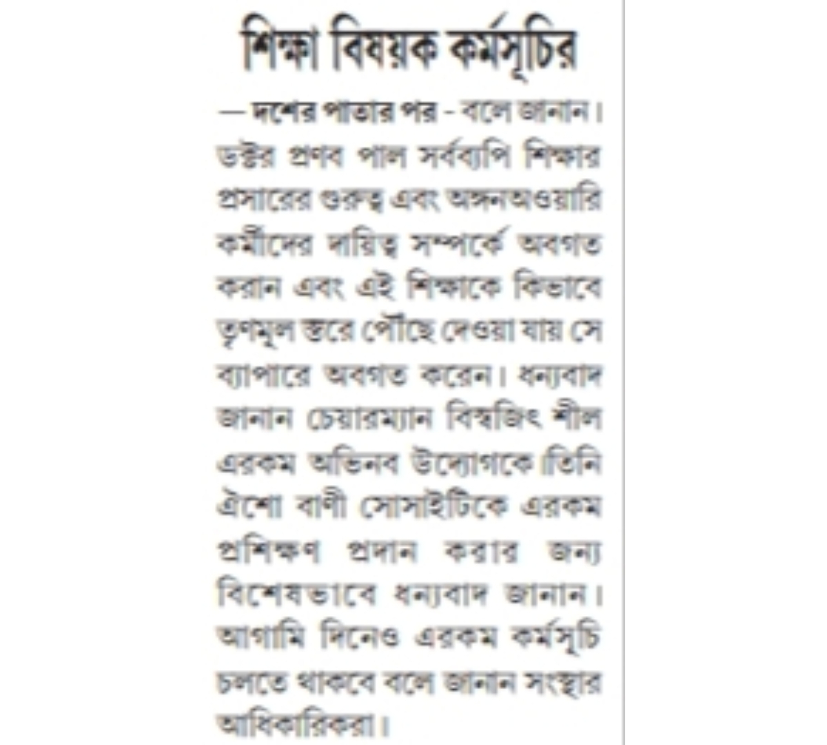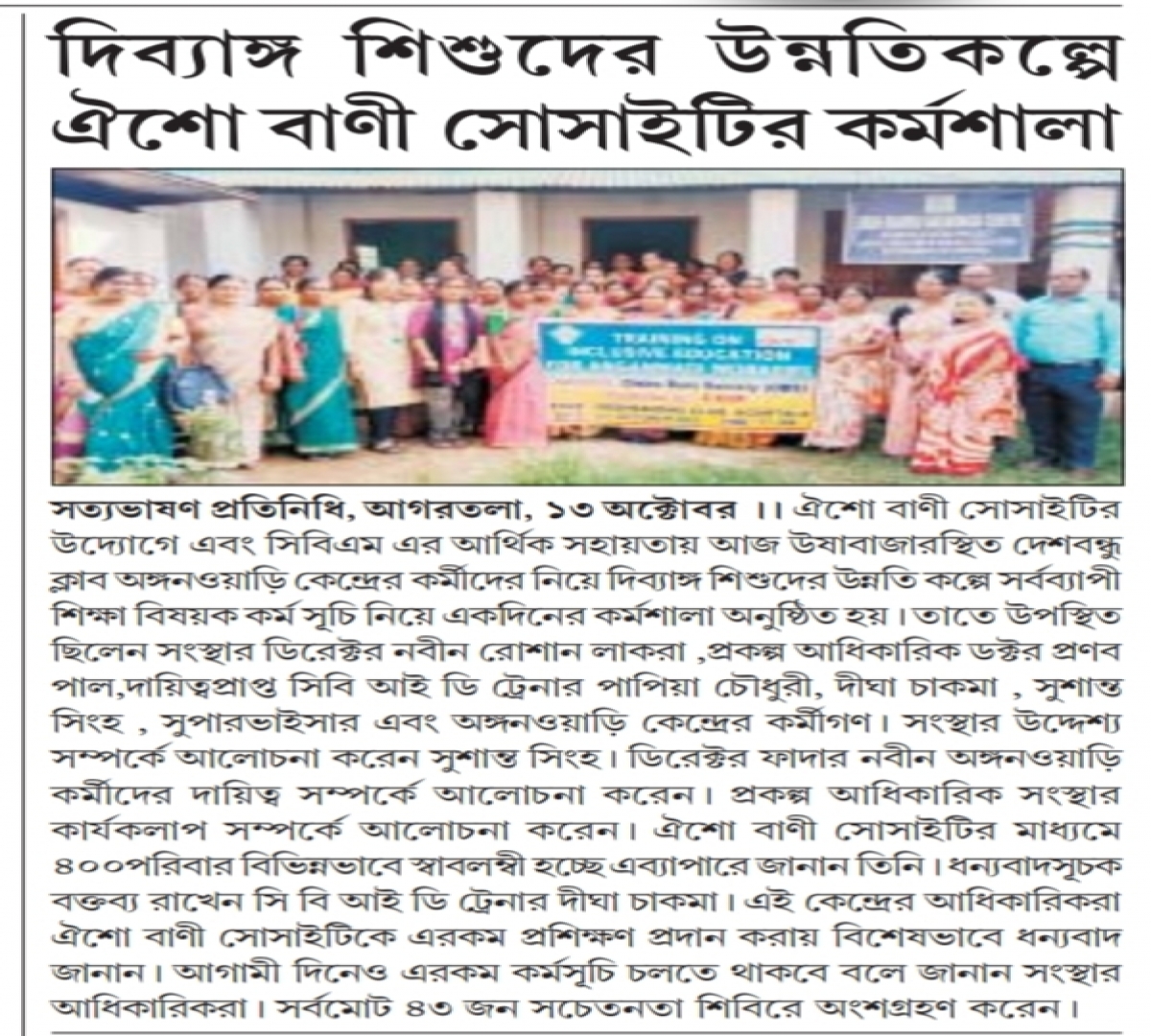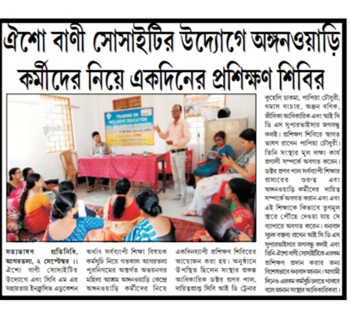 One day training camp for Anganwadi workers organized by Oisho Bani Society