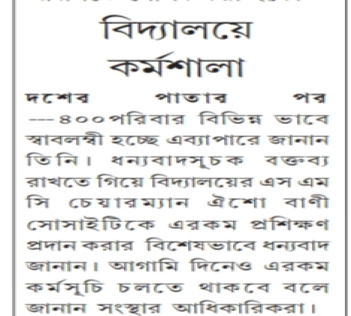 Oisho Bani Society organized two days workshop