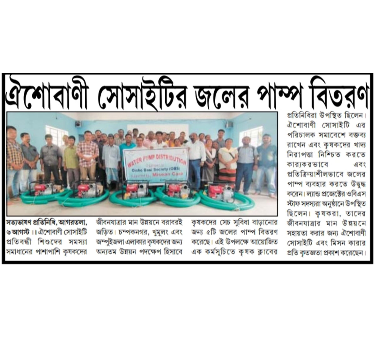 Oisho Bani Society Distributed Water Pumps