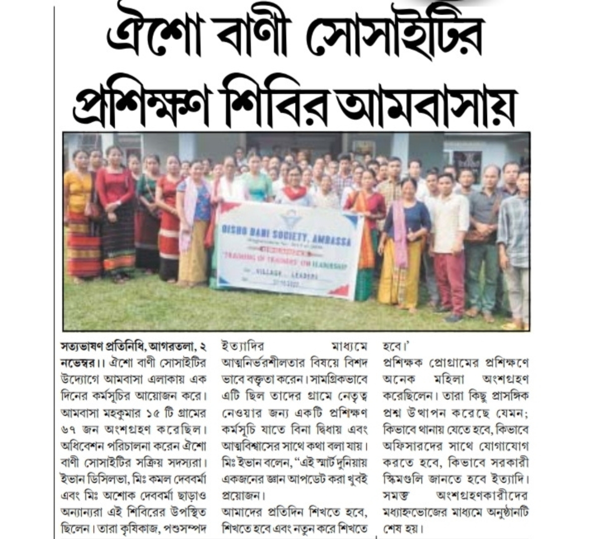 Oisho Bani Society Organised a Training on Leadership in Ambassa